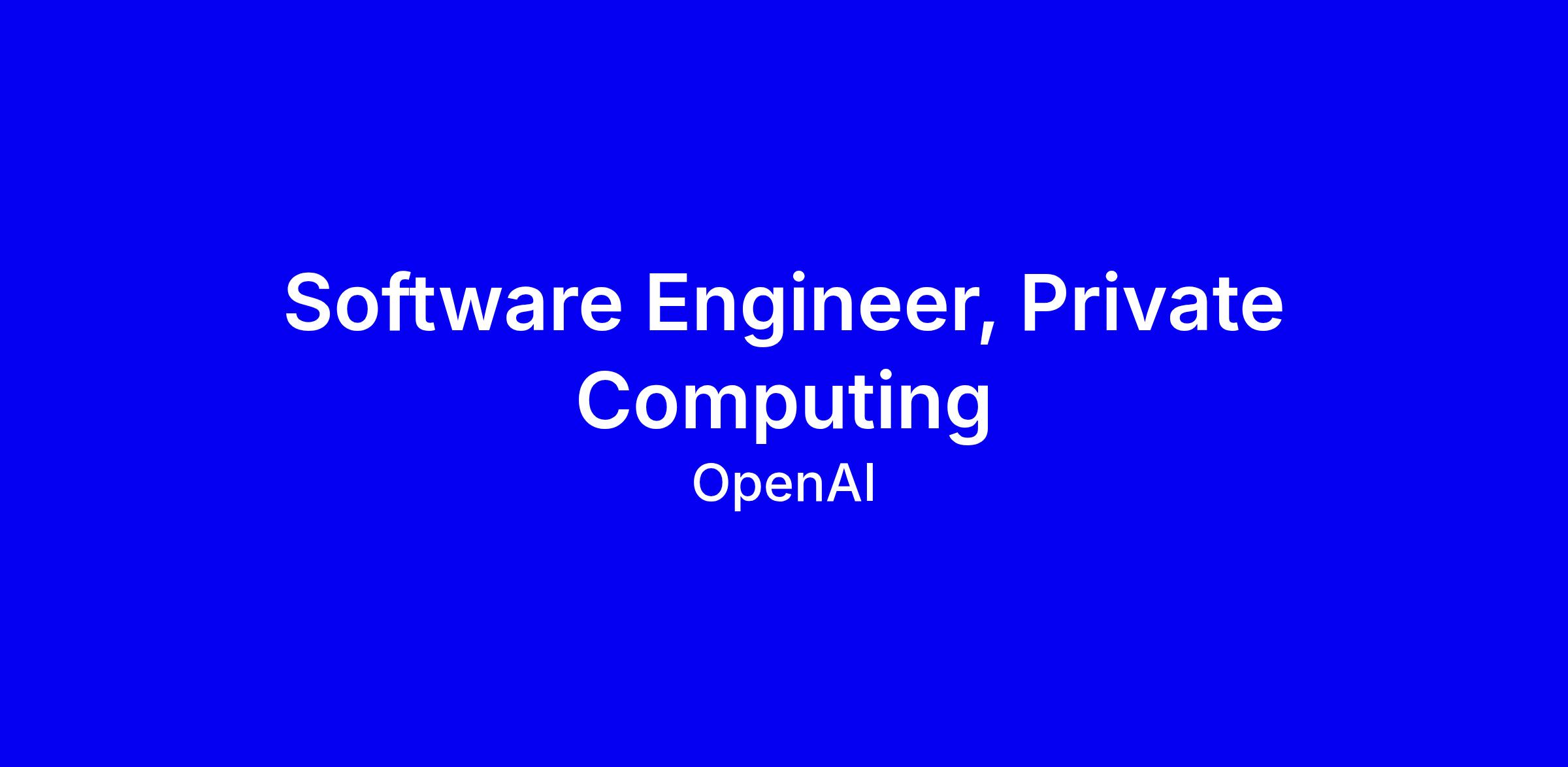 The Private Computing team works across product, engineering, security, and safety to build advanced privacy products and infrastructure at OpenAI. Our mission is to provide world-class security features to users so their private data remains private, even from OpenAI. We use technologies like confidential computing, trusted execution environments, and end-to-end encryption to ship product features across ChatGPT, the API, and our future consumer devices.