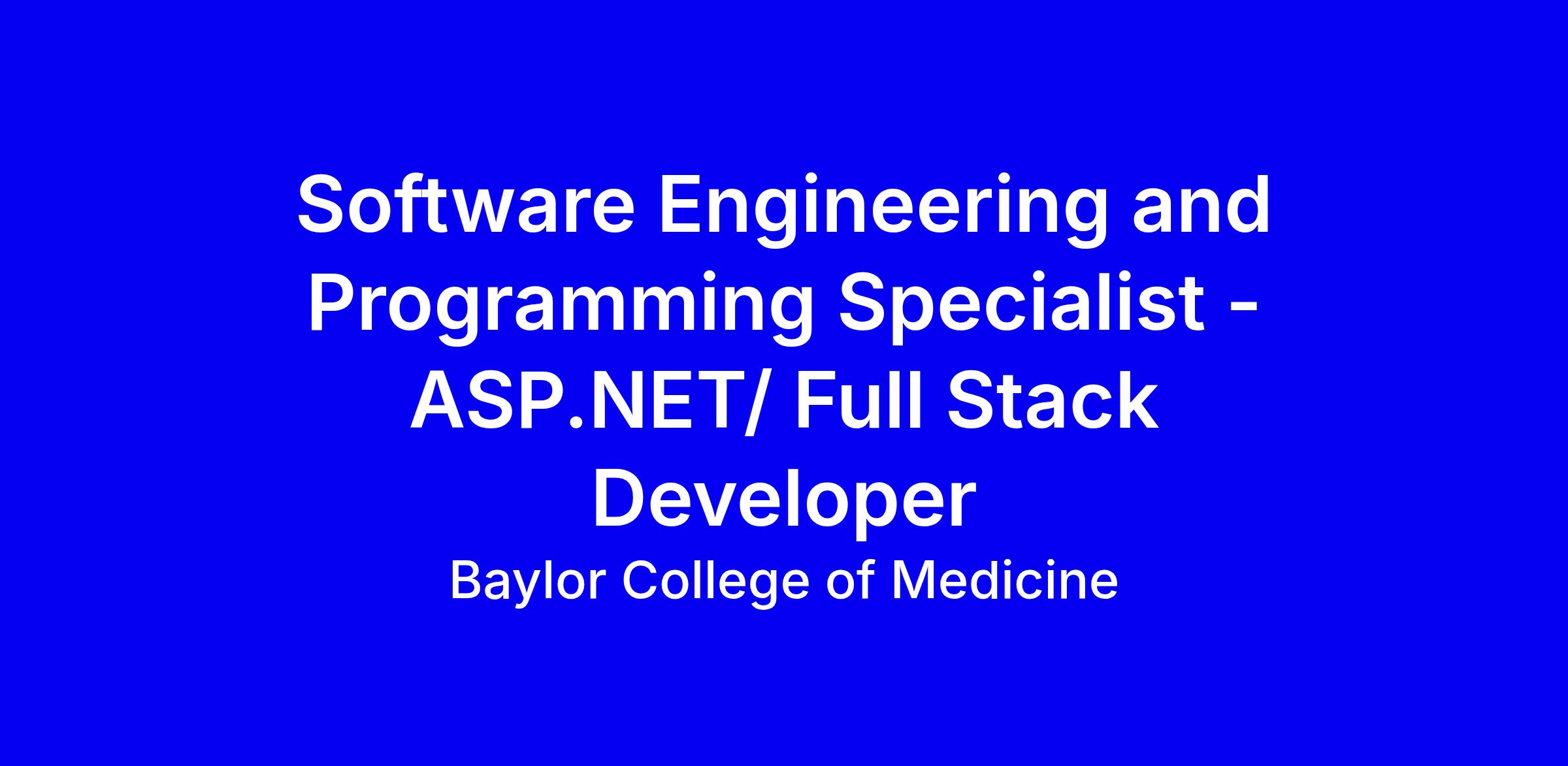 Baylor College of Medicine is hiring an entry level Software Engineering and Programming Specialist for the Office of Research IT in Houston, full-time onsite, to help build and maintain web-based applications that support biomedical research using ASP.NET, C#, SQL Server and modern web tools. You’ll design, code, test, document and train users, collaborate with investigators, and contribute to data dictionaries and system documentation while staying current with technology. Minimum qualifications include a high school diploma or GED and four years of relevant experience; a CS degree is not mandatory. Visa sponsorship is not available. Apply by highlighting concrete projects, teamwork, clear documentation, and a proactive learning mindset, plus strong communication.