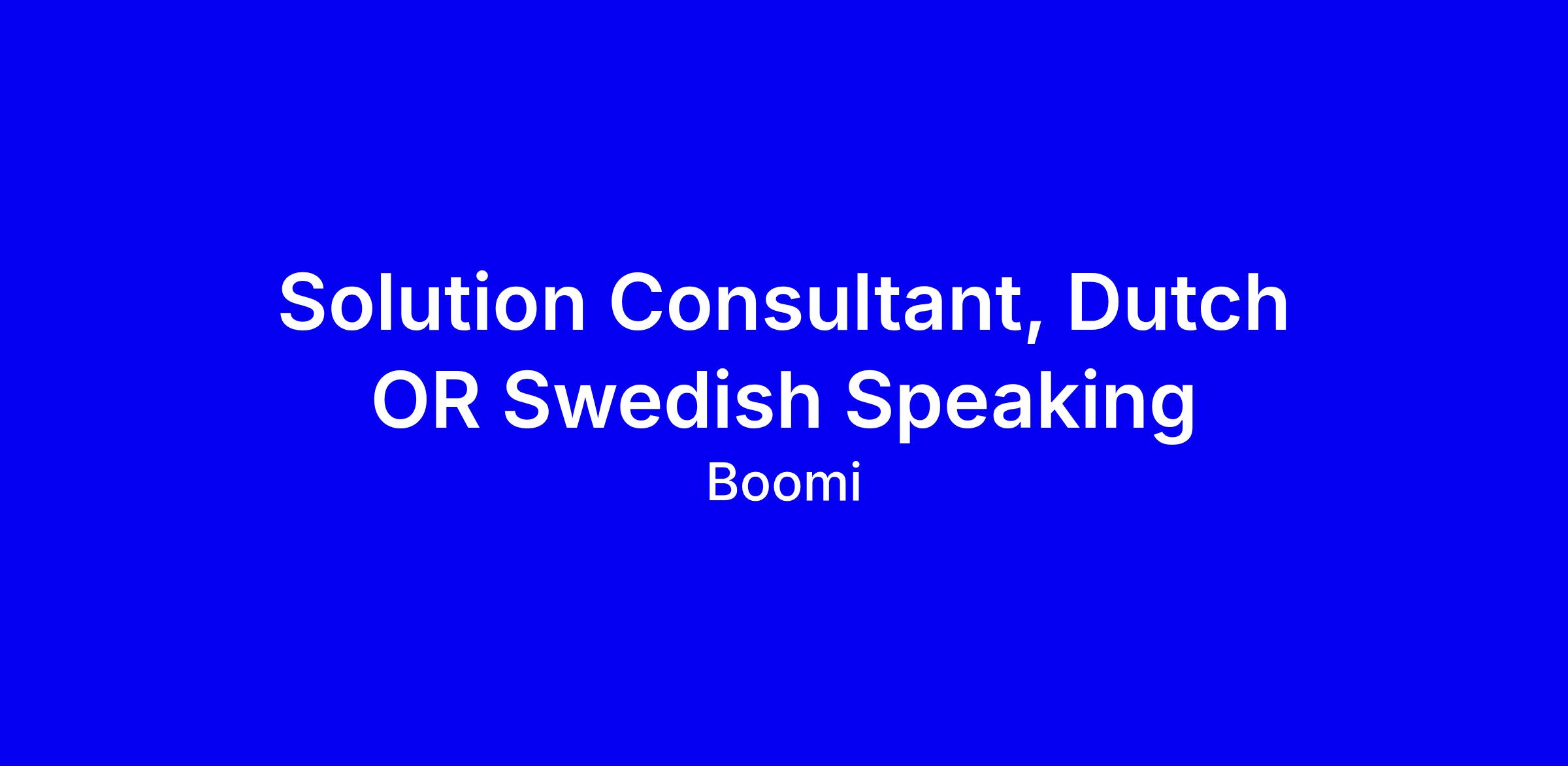 Boomi is hiring a dynamic Solutions Consultant to support enterprise accounts in the Netherlands or Sweden, with English plus Dutch or Swedish and the option to work remotely. You will manage relationships with customer technical staff, qualify opportunities, articulate Boomi’s business value, and guide deals from presales to implementation. Expect to create compelling presentations for both technical and business buyers, collaborate with sales, solution architects and cross-functional teams, and stay current on iPaaS, API management, data governance and related trends. To apply, tailor your resume to demonstrate quota-bearing field experience, enterprise integration know-how, and measurable wins; highlight relevant platform experience (SAP, Oracle, Salesforce, ServiceNow), strong communication, and a passion for continuous learning and mentoring.