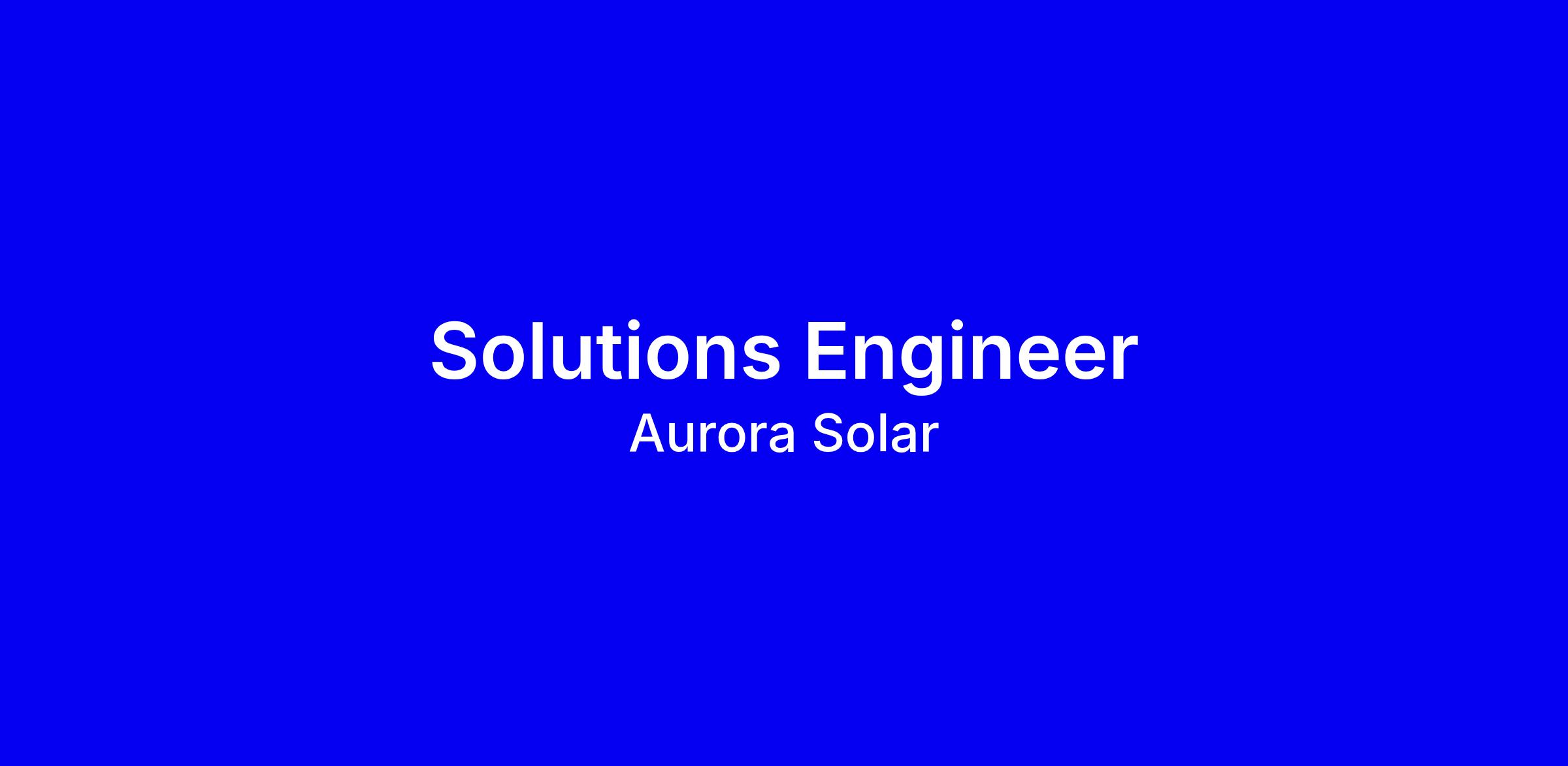 As a Solutions Engineer at Aurora Solar, you’ll support customers throughout their journey from early discovery through onboarding, integration, and ongoing use. You’ll build a strong understanding of Aurora’s platform, APIs, and integrations through hands-on customer work, mentorship, and collaboration with senior team members.