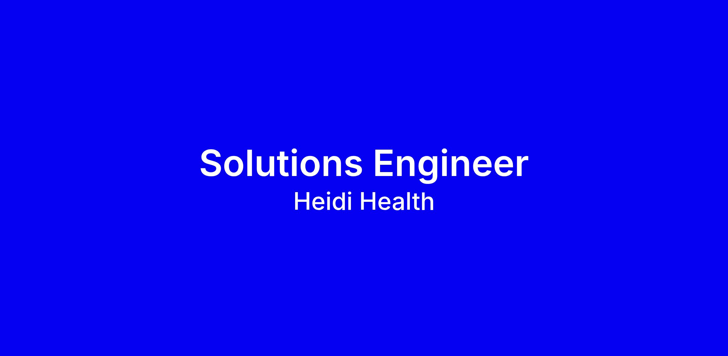 Heidi Health is hiring a Solutions Engineer to be the technical lead in enterprise sales, guiding prospects through what’s possible with Heidi, evaluating integration feasibility, and ensuring a smooth handoff to implementation. You’ll collaborate with Account Executives, Product and Engineering to design tailored solutions around EMR integrations, SSO, data workflows, and security architecture, plus telephony and call system integrations (Twilio, WebRTC, SIP) and deliver compelling demos for IT, InfoSec, and engineering stakeholders. The ideal candidate has 5+ years in solution engineering, strong API and security knowledge, and a track record supporting large healthcare or SaaS deals; HL7/FHIR familiarity is a plus. To apply, highlight hands-on integration projects, RFP responses, and security assessments, demonstrate impact in prior cycles, and show readiness to work onsite in London. Heidi champions inclusion and opportunity.