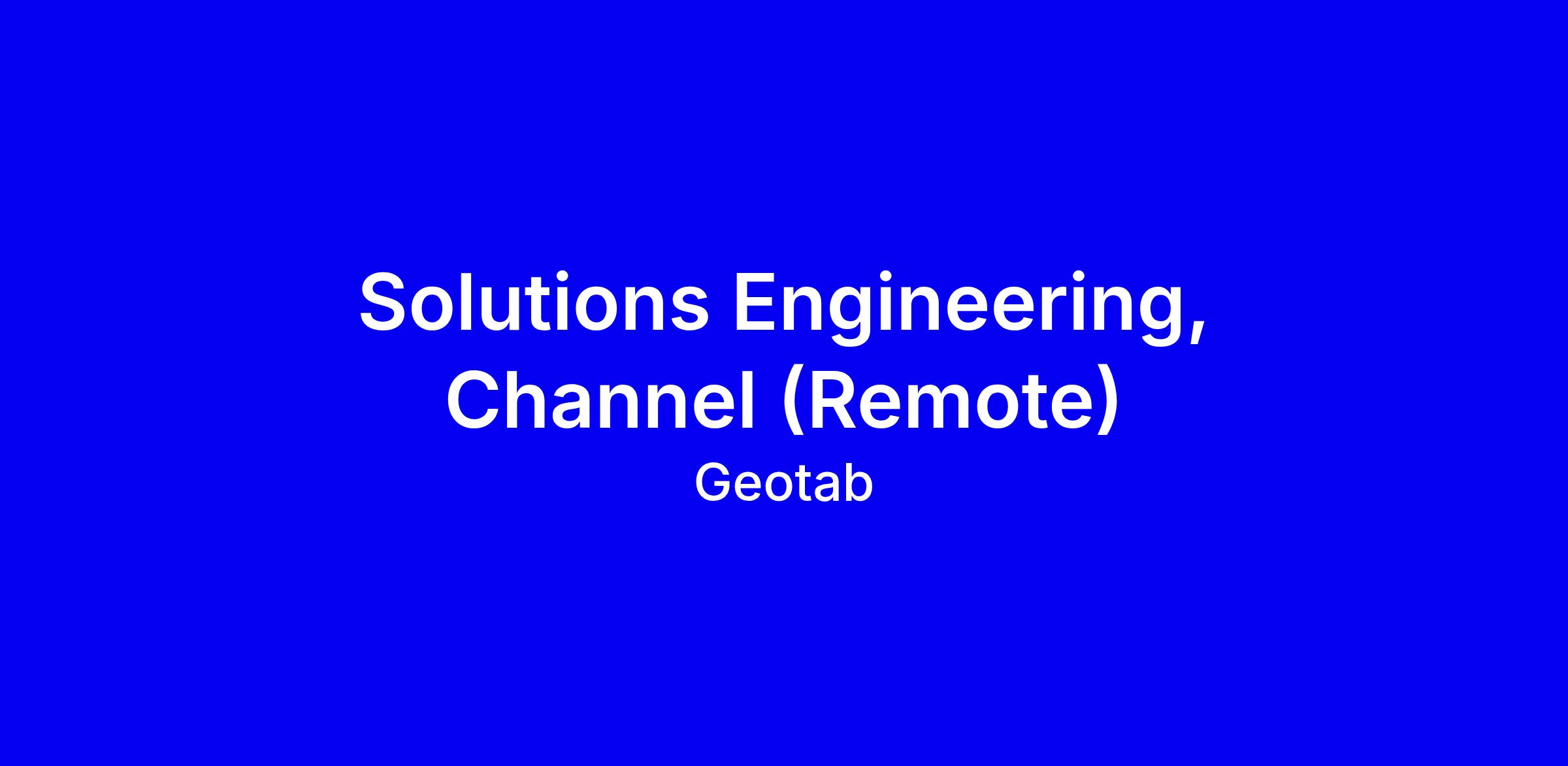 We are always looking for amazing talent who can contribute to our growth and deliver results! Geotab is seeking a Solutions Engineer who will showcase and adapt Geotab solutions for partners and end-users by identifying and understanding customer needs and requirements. This position is involved in the development and customization of solutions using Geotab’s open platform to meet unique requirements and support partners and customers to overcome their business challenges. If you love technology, and are keen to join an industry leader — we would love to hear from you!