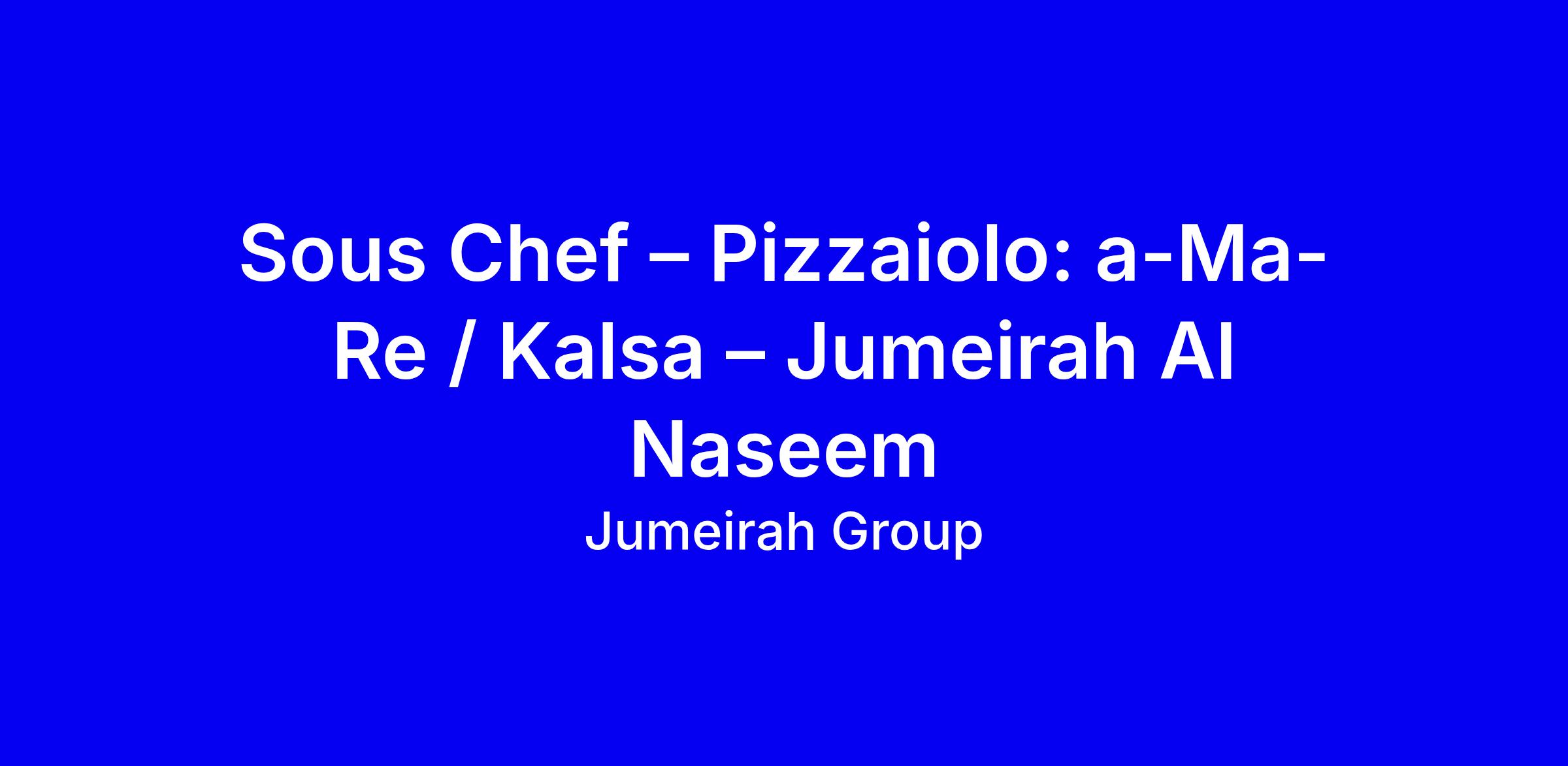 An exciting opportunity has arisen for a Sous Chef – Pizzaiolo to join Jumeirah Al Naseem. The main duties and responsibilities of this role include: