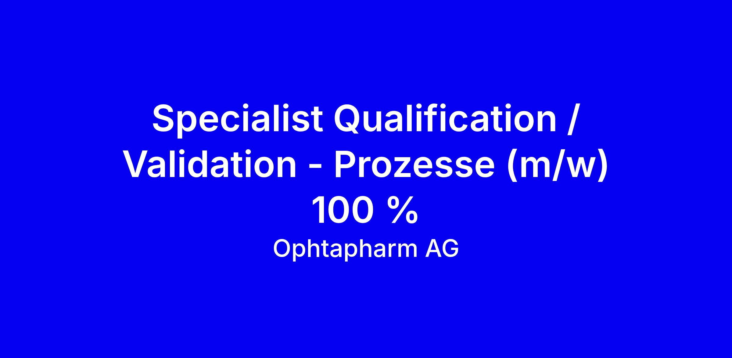 Specialist Qualification / Validation - Prozesse (m/w) 100 %