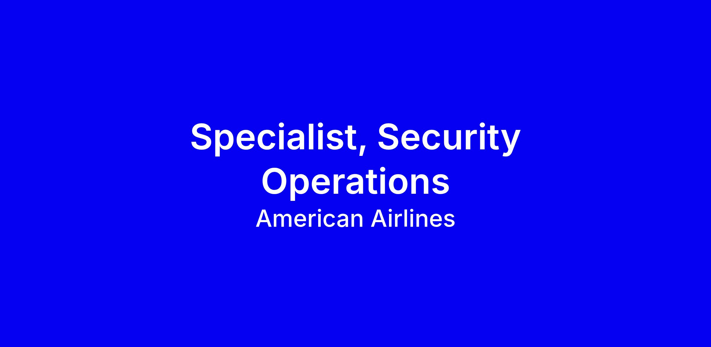 American Airlines is seeking a Specialist, Security Operations in Fort Worth, a full-time onsite role within the IOC Security Ops team. You’ll monitor global security events, act as the first contact for critical incidents, coordinate cross functional response, provide real time guidance, prepare briefs, manage watch lists, and interface with local, state and federal agencies in a 24/7 environment. Requirements include a high school diploma, English fluency, and relevant experience in airport operations, security or GSOC; preferred credentials include SABRE RES/DECS/QIK, GSC, and leadership experience. Key strengths are calm decisiveness under pressure, multi tasking, collaboration, and proficiency with SharePoint, Power BI and Everbridge. Tailor your resume to incident management and emphasize crisis decision making.