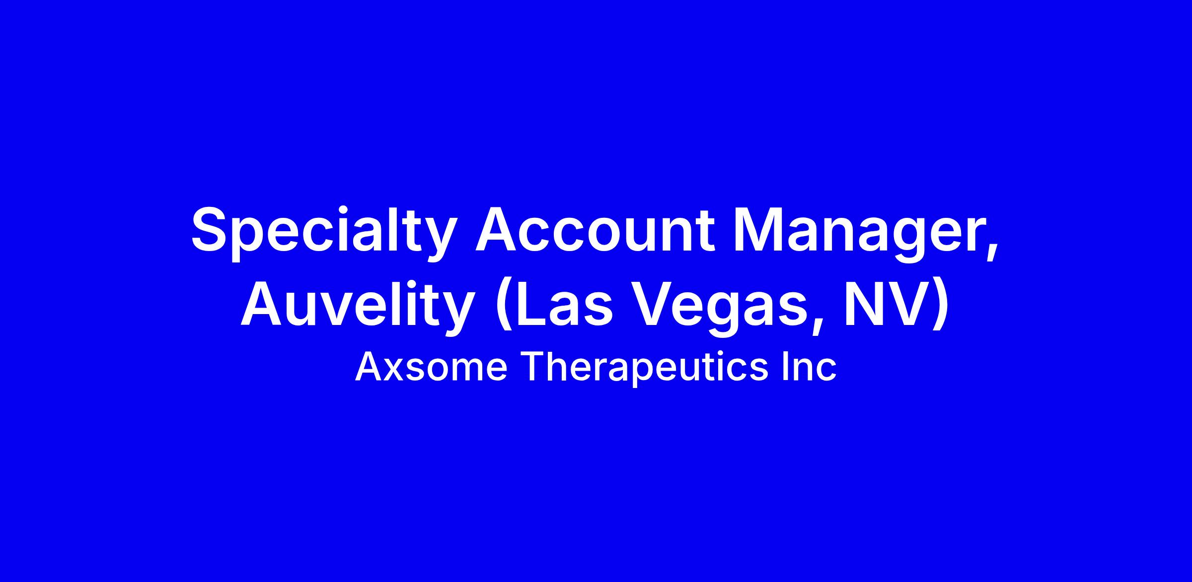 Axsome Therapeutics is seeking a field based Specialty Account Manager to promote AUVELITY for major depressive disorder in adults across the Las Vegas area, building relationships with clinics and hospitals, optimizing access through patient services and payer processes, and leveraging digital channels to complement in person visits. The ideal candidate has at least 5 years in pharma sales, CNS/psychiatry experience preferred, a proven launch track record, and the ability to craft territory business plans and manage budgets. Strong presentation and cross functional collaboration are essential, as is living in the territory and willingness to travel. To apply, use official channels on Axsame’s site or LinkedIn; no unsolicited resumes.