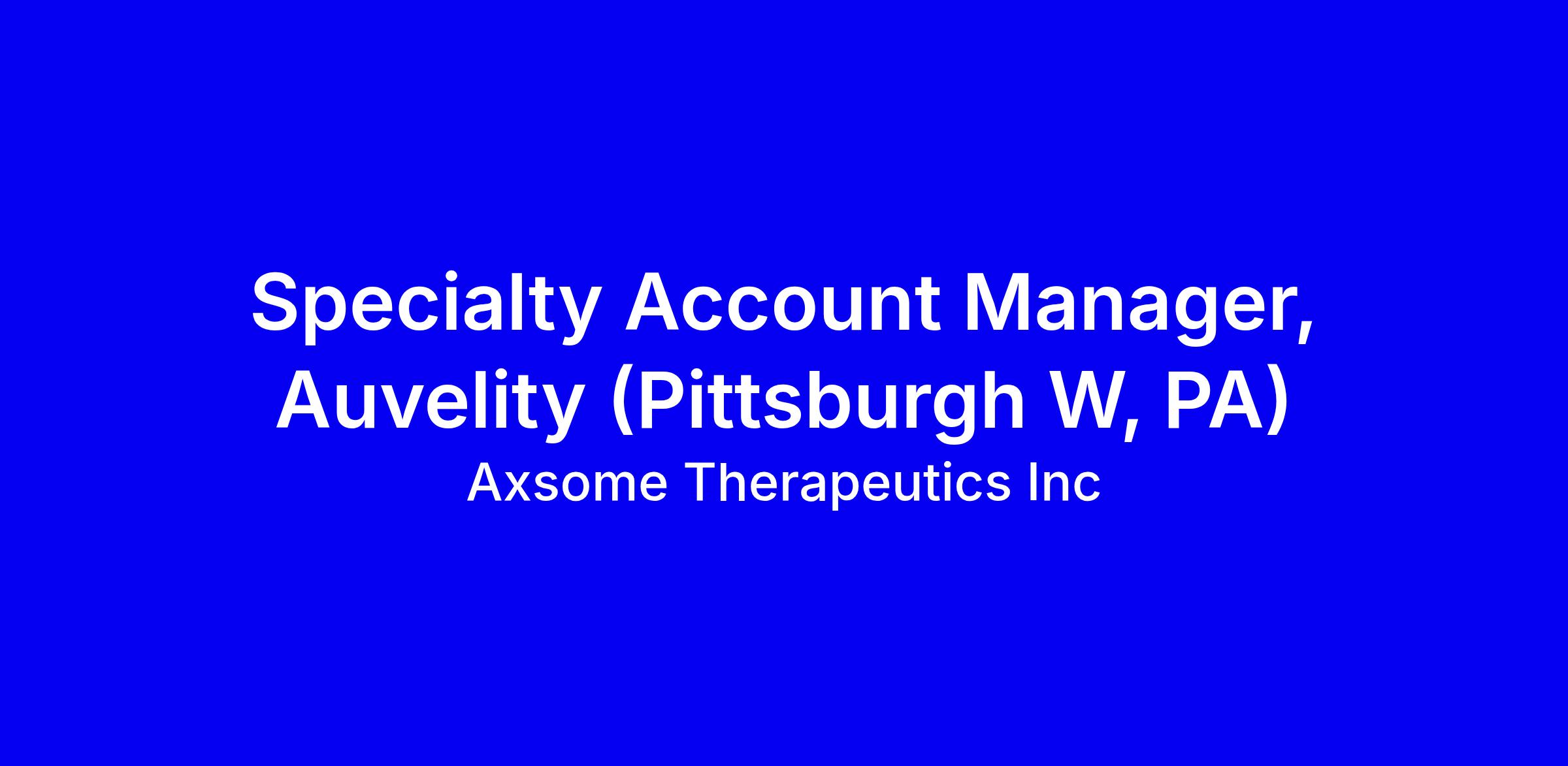 Axsome Therapeutics is seeking a Specialty Account Manager to drive AUVELITY promotion for major depressive disorder in adults in the Pittsburgh area. This field-based, onsite role demands strong customer relationships, cross-functional collaboration, and a track record of top performance in pharma or biotech sales, with CNS/psychiatry experience preferred. You will own territory planning, engage clinicians through virtual and live visits, support payer and patient access, and manage a promotional budget while complying with labeling and regulatory guidelines. To apply, tailor your resume to CNS launches with measurable outcomes, show territory impact, confirm residency, and demonstrate willingness to travel and meet physical requirements.