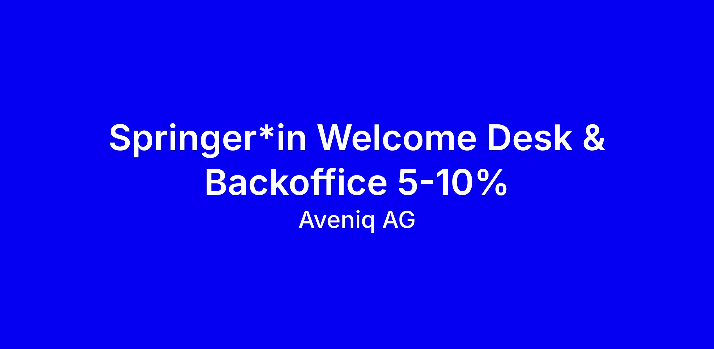 Die Stelle als Springer*in Welcome Desk & Backoffice 5-10% bei Aveniq AG bietet dir flexible Einsätze als Empfangsmitarbeiter*in und die Chance, Teil des Talent-Pools zu werden, mit Einsätzen an den Standorten Baden, Dübendorf und Oftringen. Du bist die erste Kontaktperson, begrüsst Besucher kompetent, unterstützt die Telefonzentrale und die Postverteilung und schaffst eine herzliche Atmosphäre, damit sich Gäste willkommen fühlen. Wichtig sind eine serviceorientierte Persönlichkeit, Erfahrung im Empfangs- und kaufmännischen Bereich, stilsicheres Deutsch, Englisch von Vorteil, sowie Flexibilität bei den Arbeitszeiten. Tipps: Hebe konkrete Front-Office-Erfolge hervor, betone Mobilität zwischen Standorten, Zuverlässigkeit und Teamfähigkeit, passe deine Bewerbung an die Standorte an.