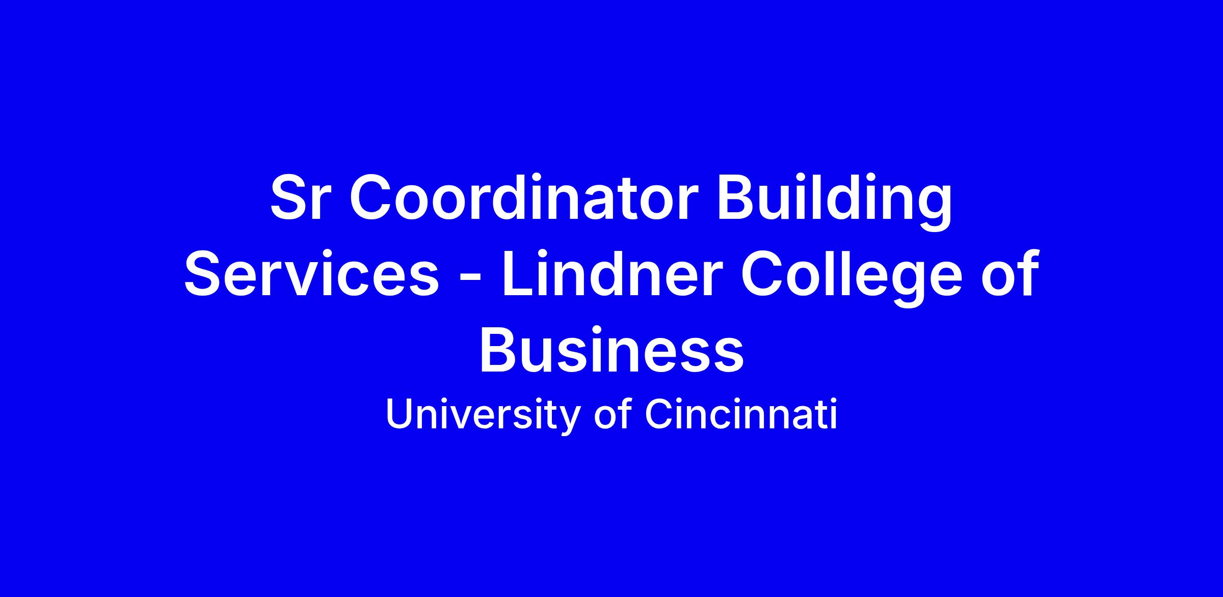The Sr Coordinator Building Services at the Lindner College of Business, University of Cincinnati, is a full-time onsite role that leads events and the handling of equipment and furnishings, audiovisual systems, receiving and distribution, and coordinates repairs and alterations while partnering with maintenance, vendors, and outside contractors to keep spaces well maintained. You’ll oversee classroom AV, develop operational policies, coordinate service functions, monitor inventory and security, and may supervise exempt and non-exempt staff. Requirements include a bachelor’s degree plus three years of related experience, or seven years in lieu of education. UC offers strong benefits, tuition remission, robust retirement options, and generous leave. Internal UC applicants must apply via SuccessFactors; to maximize your chances tailor your resume to emphasize operations, repairs, AV management, policy development and staff supervision; apply through the UC careers portal.