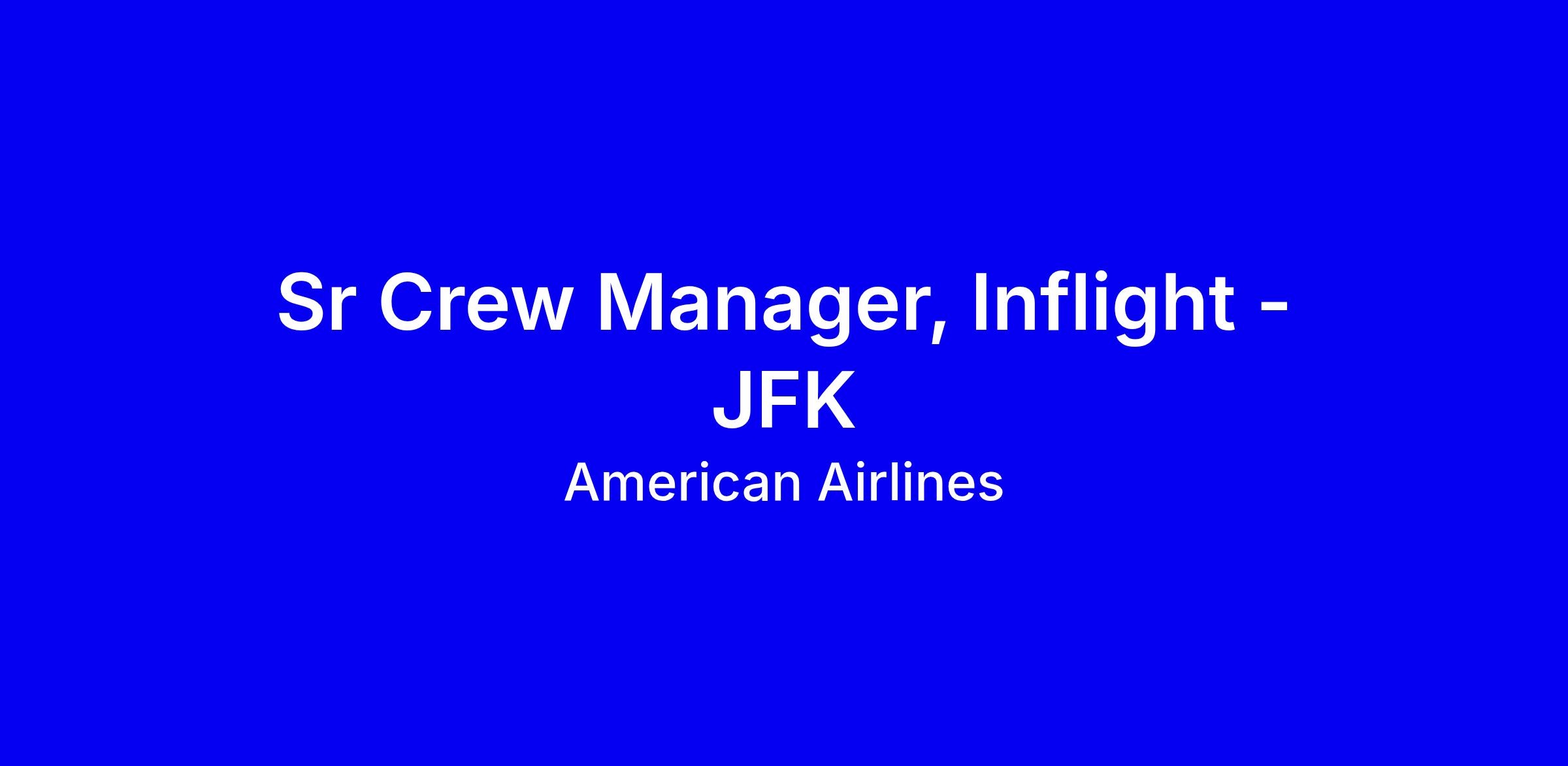 American Airlines seeks a Sr Crew Manager, Inflight at JFK to lead a safe, high performing operation guiding flight attendants, allocating resources, and ensuring timely departures with strong customer service. Requires 4+ years leadership, a bachelor’s degree or equivalent, and onsite weekend and holiday availability. You’ll be APFA contracts expert, mentor new hires, and drive key initiatives as project lead on new hire programs. Strong communication and data informed decision making, plus the ability to resolve staffing issues, are essential. Benefits include travel perks, health coverage, 401(k) and wellness programs. Apply by highlighting safety leadership, union familiarity, and operational planning, and prepare for FAA background checks and DOT drug testing.