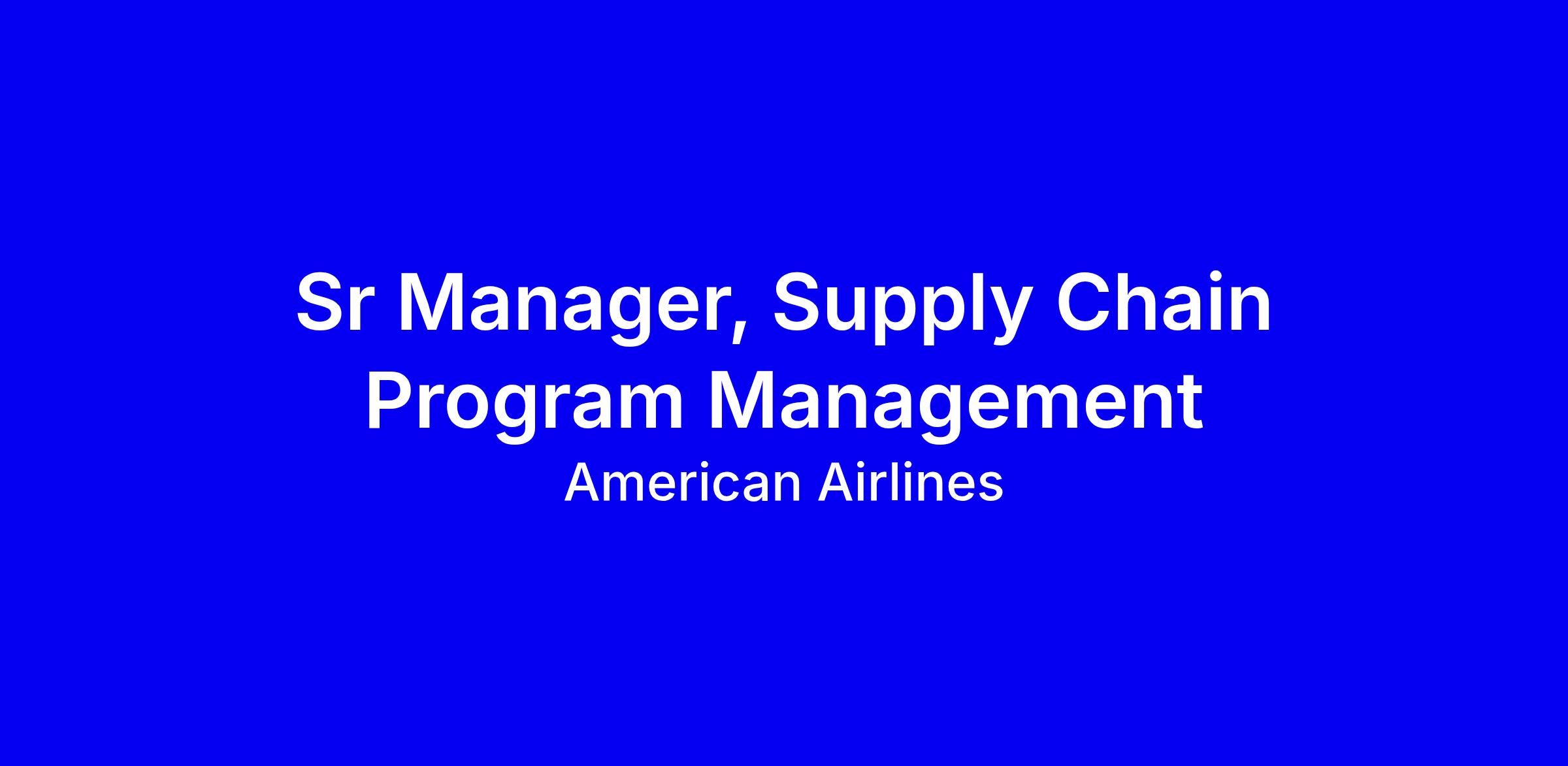 American Airlines is hiring a Sr Manager, Supply Chain Program Management to lead a team of project managers delivering cross functional supply chain modernization initiatives within Tech Ops and Integrated Operations. You’ll set strategy, remove barriers, and drive accountable, scalable solutions that improve inventory performance, material flow, supplier reliability, and overall efficiency. Successful candidates have an advanced degree, 8–10 years in airline Technical Operations (Engineering, Production, Planning, Programs or IT), PMP and PMO experience, and a knack for influencing across teams. To apply, tailor your resume to highlight large scale PMO work, measurable outcomes, and cross functional collaboration; showcase senior level communication and risk management. Onsite, Fort Worth, full time.