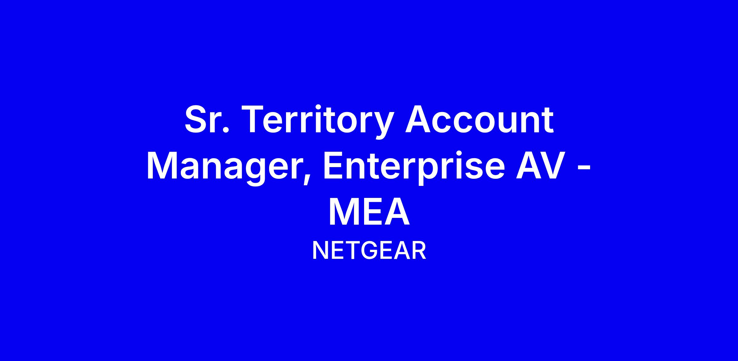 NETGEAR seeks a seasoned Sr Territory Account Manager to lead the Enterprise AV channel across MEA from Dubai, partnering with integrators, distributors, consultants, and end users to grow sales of IP switches and wireless products for AV. The role emphasizes solution selling, partner program engagement, and local business planning, with travel about 70%. Requirements include 8+ years in AV channel management, strong CEO/CTO level relationships, a proven record of closing high-value campaigns, and deep AV over IP knowledge. Fluent English; Arabic or French a plus; Salesforce experience preferred. To apply, tailor your resume to quantify wins, highlight partner development, and show forecast discipline; include a regional plan and a note on why you fit NETGEAR's Next Gear mindset.