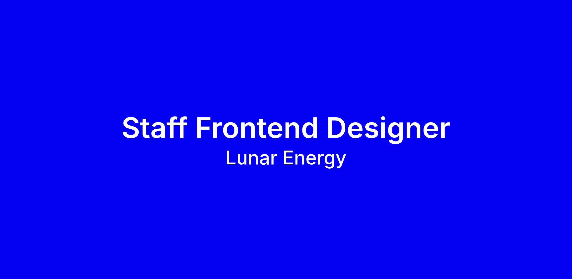 Lunar Energy is seeking a Staff Frontend Designer to join a small, collaborative team and shape the TS+React front end for Lunar Gridshare, which optimizes solar, home storage, EVs and other energy flows. You will own high impact UI/UX work, contribute to a robust component library, and ensure consistency across teams. To apply, showcase a strong portfolio with UI/UX, data visualizations and motion design, plus expert frontend skills (TypeScript, React, HTML/CSS) and tooling (Figma, Adobe Suite, Sketch). Demonstrate experience building complex components and a comfort with functional programming. Highlight autonomous delivery in a small team, mentoring or leadership if relevant, and tailor your materials to energy or data visualization contexts while proving collaboration with diverse stakeholders and meeting deadlines.