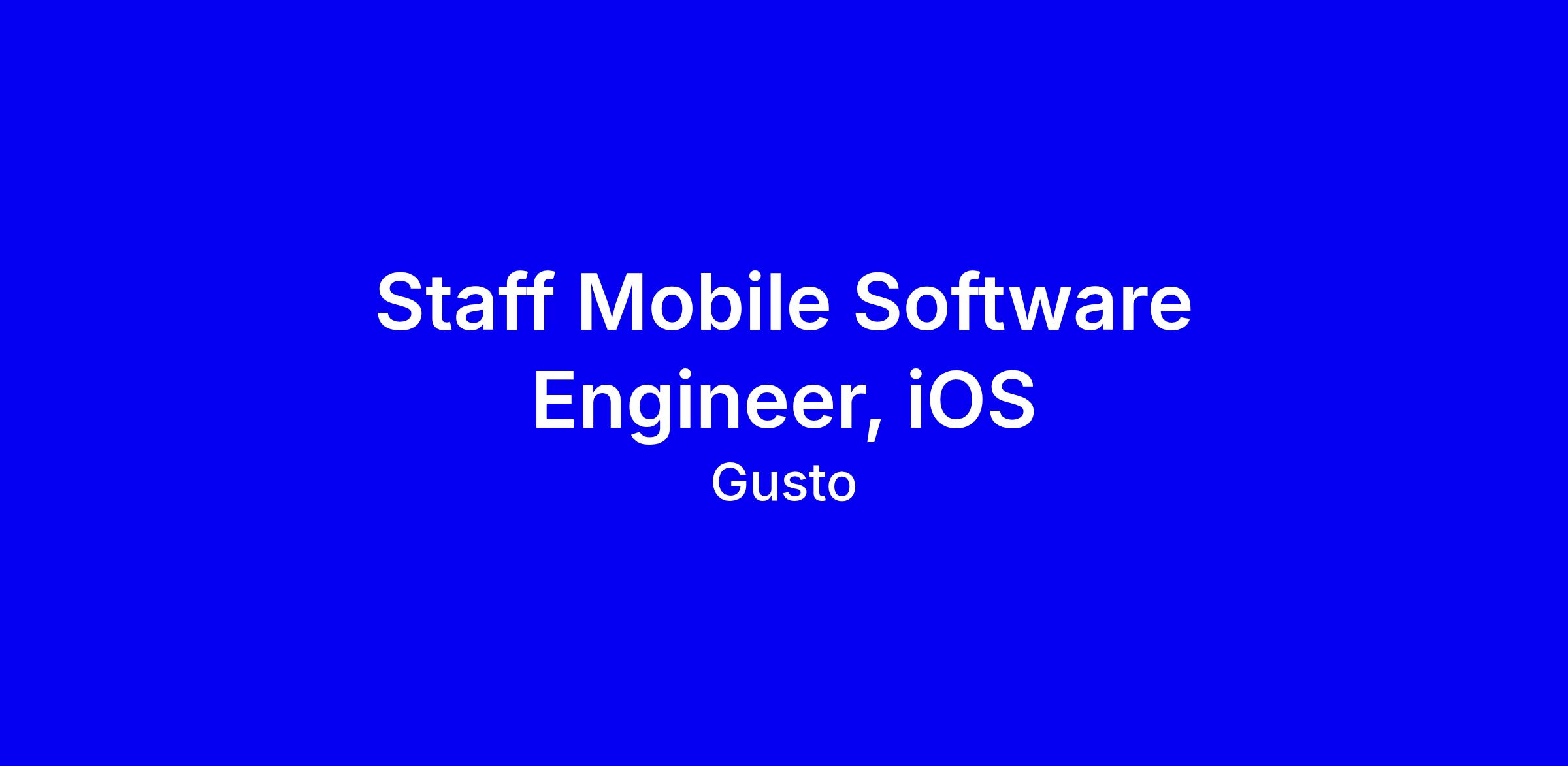 Gusto is seeking a Staff Mobile Software Engineer for iOS in New York City, onsite, to architect and deliver a native iOS app plus supporting web views, scale essential services like push and localization, and partner with Product, Identity, Security, Design Systems to ship intuitive, scalable features for small businesses. You should bring 6+ years of Swift and iOS, 8+ years mobile, strong cross-functional communication, a self-driven mindset for greenfield work, solid testing discipline, and a track record building platform components for maintainability. Compensation targets $197k-$235k plus equity; expect 2-3 office days weekly. Tips: tailor your resume to highlight end-to-end ownership, measurable impact, leadership, and concrete collaboration outcomes.