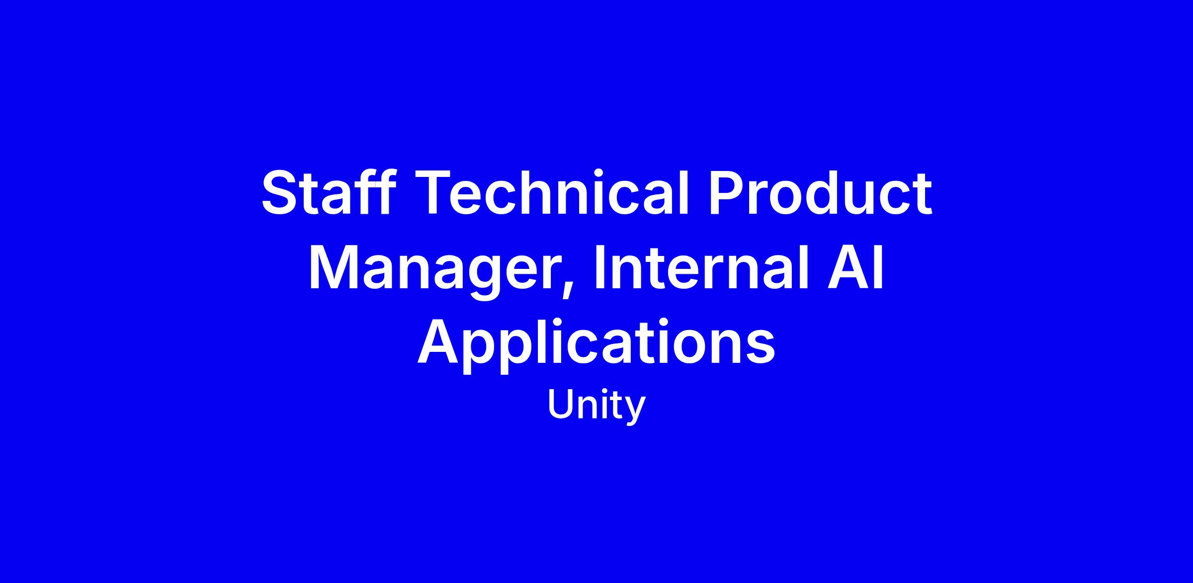 At Unity, we’re fostering a culture built on Empathy, Respect, and Opportunity. Our fast-paced and collaborative environment empowers us to tackle complex challenges, delivering real-world impact for creators and users across our ecosystem. We’re looking for a Staff Technical Product Manager to lead the next phase of our set of internal AI solutions and applications to impact the business and transform the way we work at Unity. This strategic product lead role sits at the heart of the Enterprise AI team, with a company-wide transformational remit. You’ll be reporting directly to the Senior Manager, Strategy and Execution, and working with the rest of the engineering and product team, and in close collaboration with Data engineers, IT, Security, Legal and of course the rest of the business.
