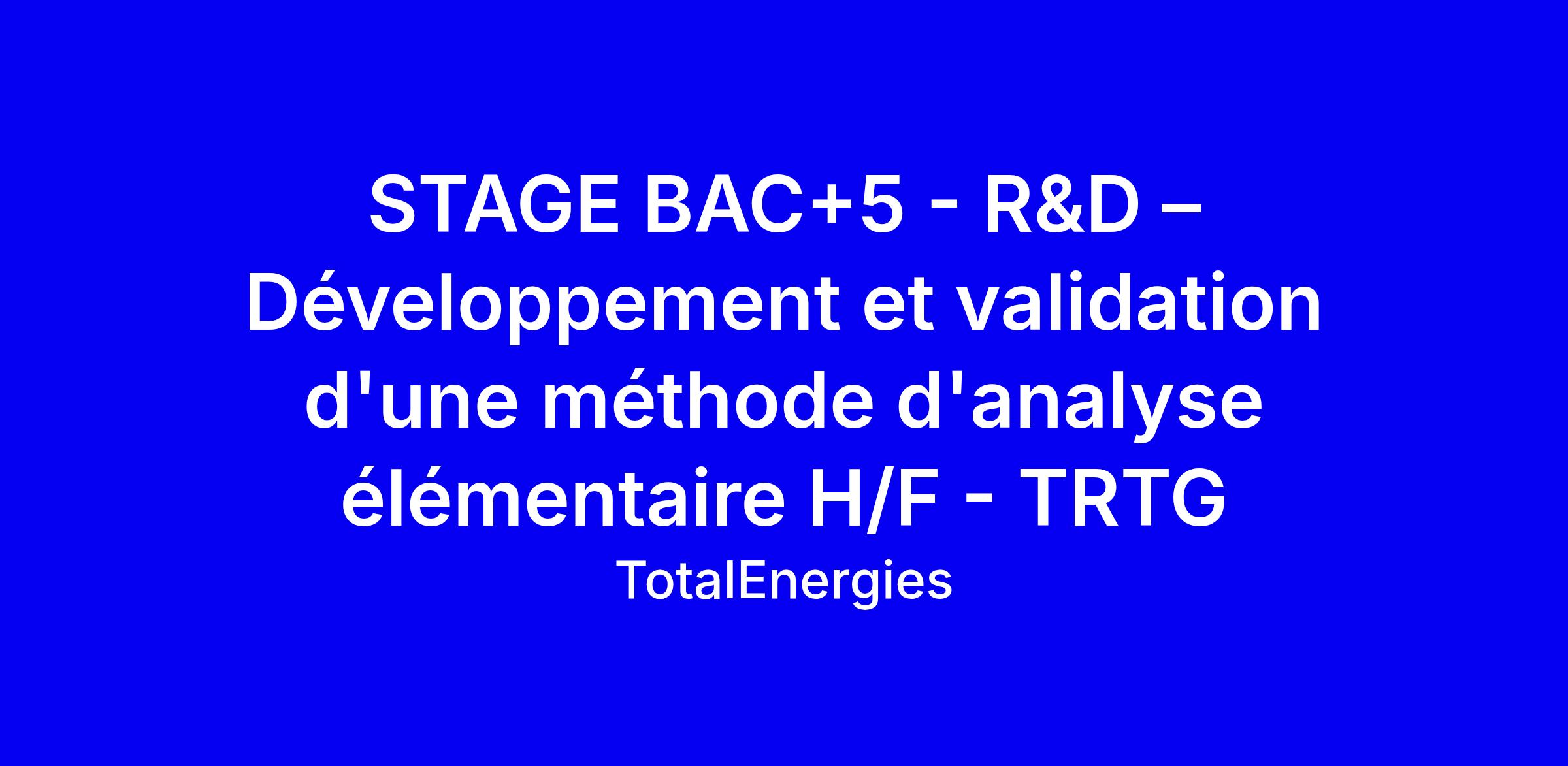 Le Centre TotalEnergies TRTG propose un stage BAC+5 en chimie analytique de 6 mois pour développer et valider une méthode d’analyse élémentaire (C, H, O, S, N) au laboratoire Physico-Chimie. Vous examinerez les protocoles existants, évaluerez l’influence des paramètres sur plusieurs matrices, développerez le protocole opératoire et rédigerez un rapport synthétique avec recommandations. Profil idéal: motivation et rigueur, formation BAC+5 en chimie analytique, expérience pratique en laboratoire, maîtrise du pack Office, autonomie, esprit d’équipe et adaptabilité; compétences à développer: pensée critique et rédaction de notes techniques. Pour postuler, privilégiez les expériences de méthodes analytiques, vos résultats concrets, et montrez votre intérêt pour l’innovation et l’énergie propre chez TotalEnergies OneTech, en précisant votre disponibilité sur Rogerville.