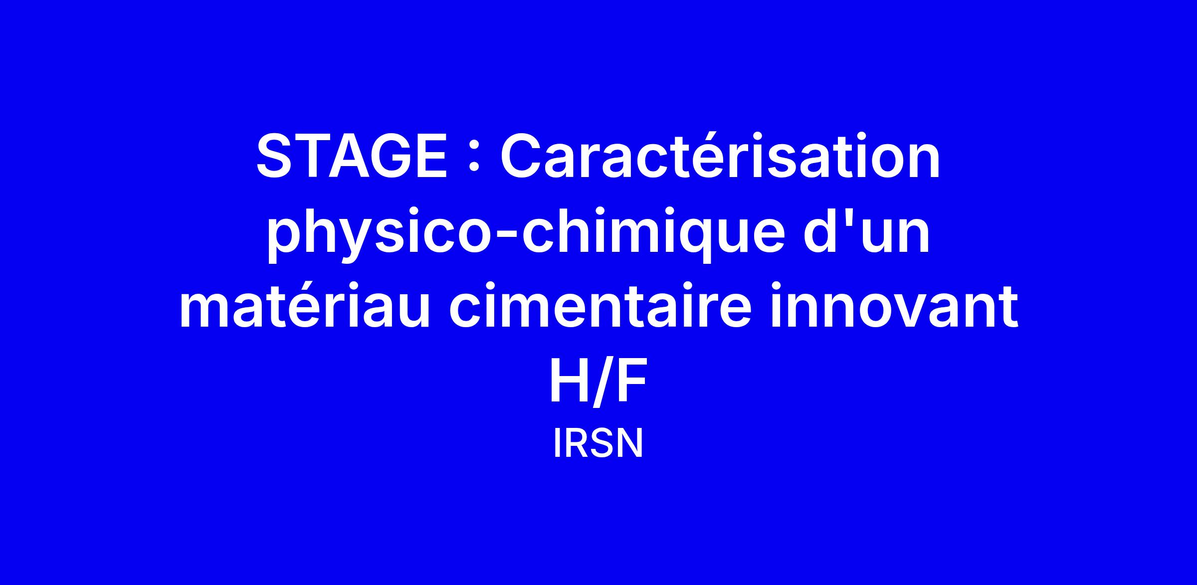 Cette offre de stage proposée par l ASNR se déroule sur le site de Fontenay-aux-Roses et vise à caractériser physico-chimiquement un matériau cimentaire innovant utilisé comme barrière contre la corrosion entre un chemisage en acier et la roche dans le cadre du projet Cigéo. Le stagiaire mènera des expérimentations sur le matériau frais (ressuage, viscosimètre Marsh) et sur le matériau durci (DRX, MEB-EDS, mesures gravimétriques, pycnomètre hélium, tests au kerdane, micro-tomographie, nano-indentation, presse hydraulique) avec une évaluation des propriétés jusqu à 80°C. Profil recherché: étudiant en M2 en sciences des matériaux ou géosciences, passionné par l’expérimental et l’analyse. Pour postuler, privilégiez un CV et une lettre mettant en valeur vos compétences instrumentales et vos expériences en laboratoire, votre motivation pour la sûreté nucléaire, votre disponibilité à partir du 9 février 2026 et votre capacité à travailler sur site tout en adhérant aux valeurs d’inclusion et de diversité de l ASNR.