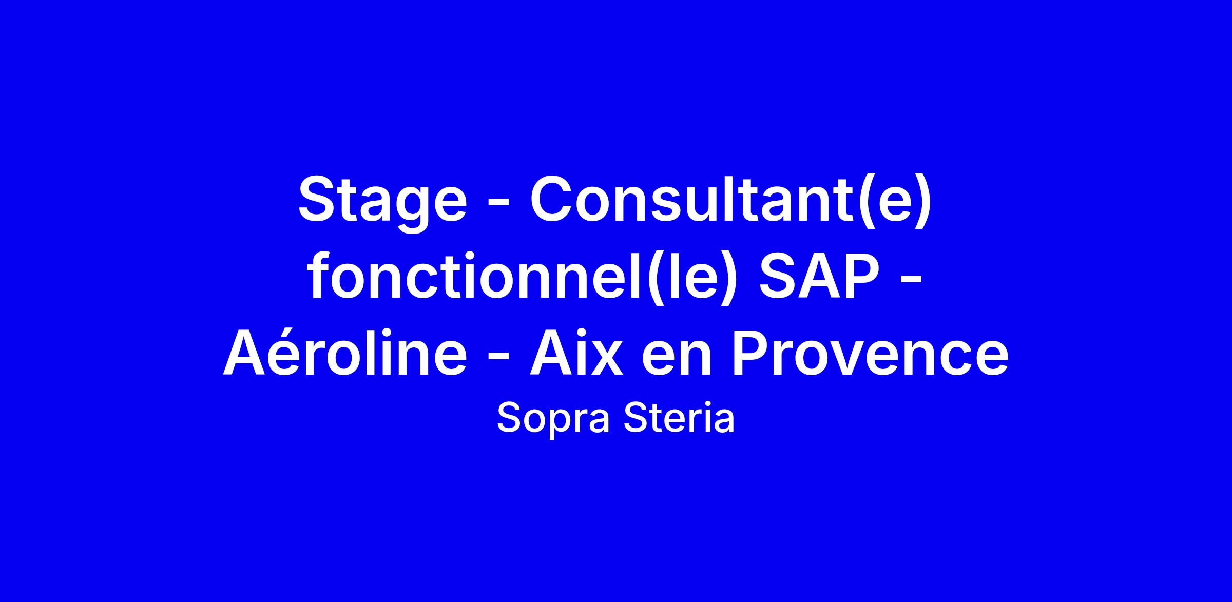 Cette offre de stage chez Sopra Steria à Aix en Provence vise un poste de Consultant(e) fonctionnel SAP, axé maintenance et évolution d’un ERP SAP (ECC ou S/4) pour un acteur majeur de l’aéronautique. Intégré dans une équipe opérationnelle, vous alternez apprentissage des procédures et contribution active au projet : recueillir les besoins, rédiger des spécifications et des dossiers de tests, paramétrer des fonctionnalités et participer à l’industrialisation, sous la supervision d’un référent fonctionnel et d’un chef de projet. Environnement SAP ABAP, méthode agile, équipe d’environ 5/6 personnes. Pour optimiser votre candidature, adaptez CV et lettre, valorisez vos projets SAP et ABAP, votre sens du client et du travail en équipe, et précisez votre disponibilité 4 à 6 mois et votre intérêt pour le travail hybride et les formations Sopra Steria Academy.