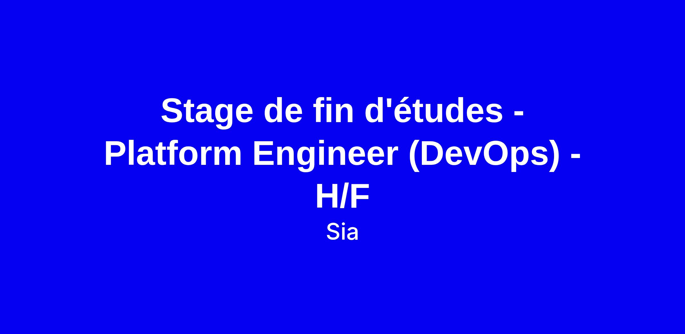 Stage de fin d’études Platform Engineer (DevOps) chez Sia à Paris. Vous collaborez avec des Data Scientists, Data Engineers et Software Engineers sur des projets data axés automatisation, calcul distribué et production Cloud, avec une gouvernance et des choix technologiques pour faire monter en puissance les solutions Data. Les travaux couvrent les services Cloud, la containerisation et l’orchestration, le Python backend et le CI/CD. Profil recherché: école d’ingénieur ou formation équivalente, idéalement une première expérience en DevOps, Cloud ou Data Engineering. Conseils: mettez en avant Python, Docker, Terraform et CI/CD, et votre appétence Kubernetes et data dans votre dossier de candidature.