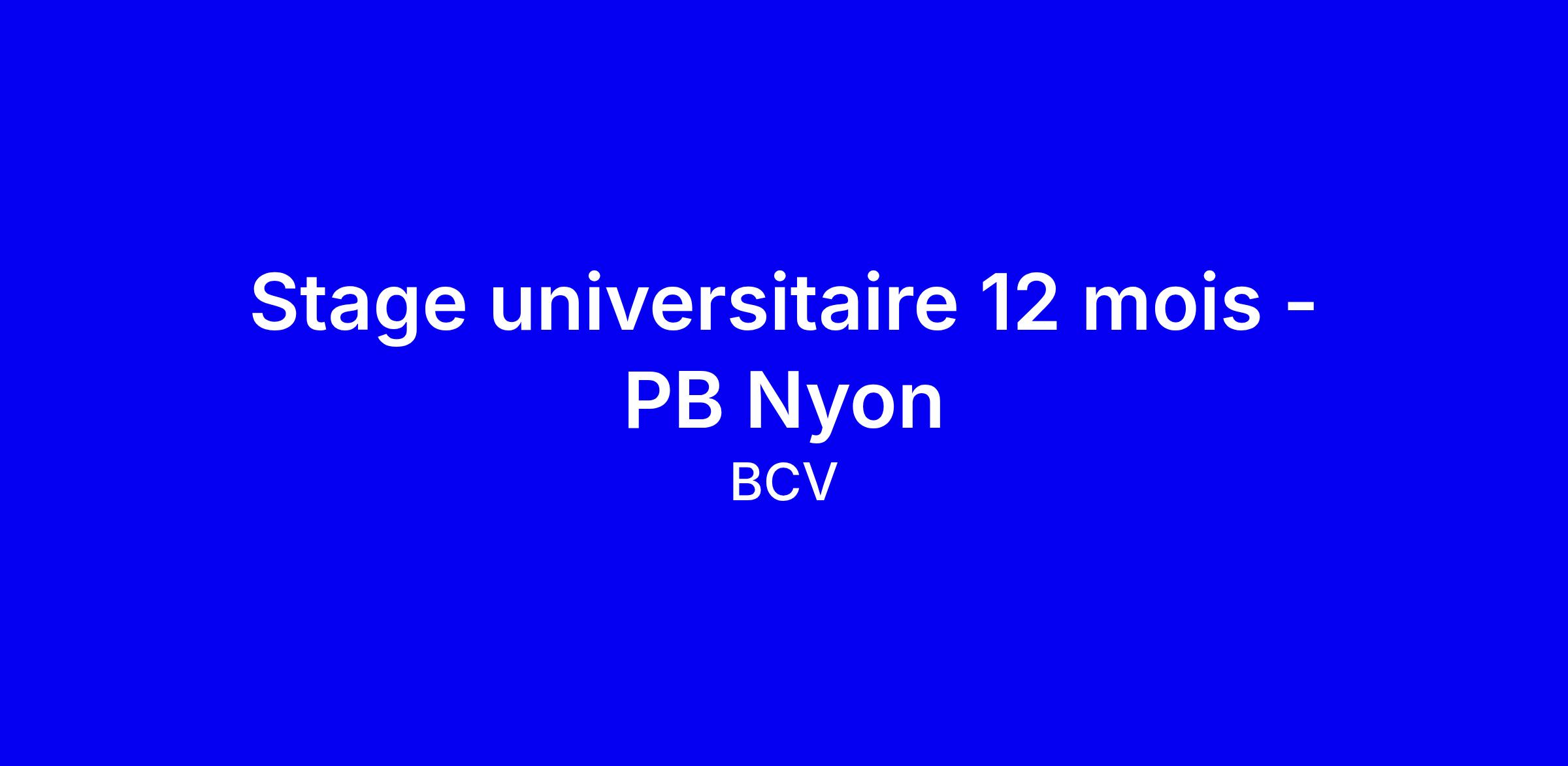 Ce stage universitaire de 12 mois à Nyon dans la division Private Banking de BCV s’adresse à un/une diplômé(e) Bachelor ou Master en économie souhaitant découvrir le secteur bancaire. Vous soutiendrez les conseillers dans la gestion administrative et le développement de portefeuilles, proposerez des solutions de gestion de fortune et une approche patrimoniale globale, et assurerez un support opérationnel avec une exécution de qualité. Profil: Bachelor ou Master en économie, intérêt pour Private Banking, connaissance des marchés et de la finance, dynamisme, fiabilité et aisance relationnelle, maîtrise des outils informatiques, anglais courant, l’allemand est un atout. Conseils postuler: personnalisez CV et lettre, illustrez votre esprit d’équipe et votre capacité à prioriser, montrez votre motivation pour BCV et postulez dès maintenant.