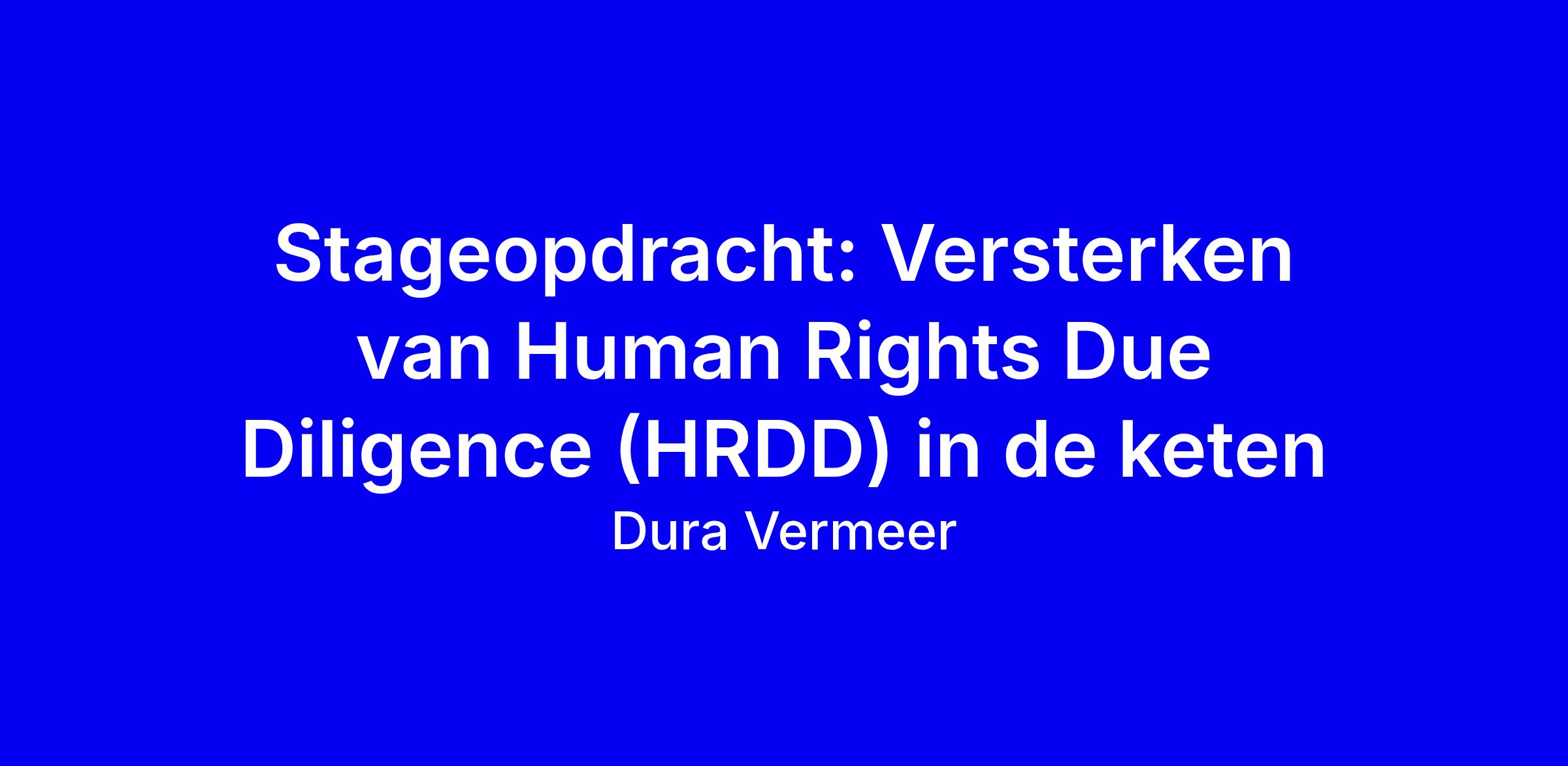 Deze stage bij Dura Vermeer in Utrecht geeft je de kans HRDD in de toeleveringsketen concreet te verankeren door beleid te vertalen naar acties, samen met inkopers en leveranciers. Focus ligt op de top 15 productgroepen met aandacht voor mensenrechtenrisico’s en -kansen; je analyseert data, voert gesprekken en legt bevindingen vast. Je hebt HBO of WO in supply chain management met duurzaamheid, minimaal 4 dagen per week beschikbaar, en je bent proactief, flexibel en georganiseerd. Wij bieden 700 euro bruto per maand, begeleiding en doorgroeimogelijkheden naar traineeship. Solliciteer via onze website; vermeld in je motivatie welke richting je aanspreekt en jouw gewenste start- en einddatum; bij vragen kun je Isil Kesmer een WhatsApp-bericht sturen via 06 14 31 49 18.