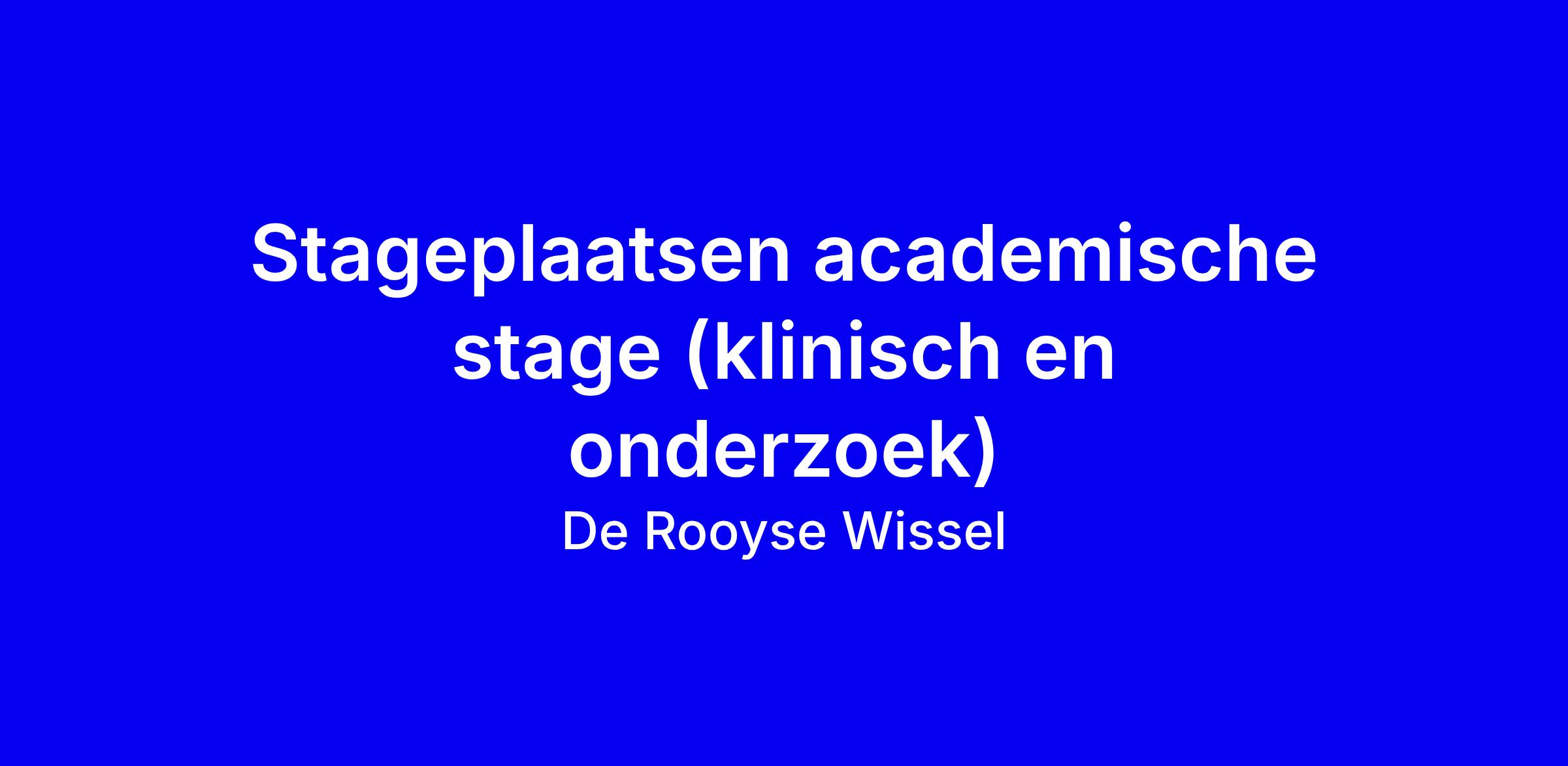 De Rooyse Wissel biedt per september 2026 twee academische stageplaatsen voor masterstudenten Klinische Psychologie, Mental Health, Forensische Psychologie en gelijkwaardige opleidingen, met een jaarlang combinatie-stage die zowel klinisch werk als een onderzoekscomponent omvat en eindigt in een thesis. Je werkt in de forensische psychiatrie en maakt kans op een plek in Oostrum (kliniek) of Maastricht (polikliniek), met onderzoeksprojecten die aansluiten bij actuele lijnen op de website. Belangrijk is begeleiding door ervaren praktijkexperts en, waar mogelijk, publicatie van een deel van de thesis. Vereisten: VOG-P, CAO-GGZ, een CV en korte antwoorden op drie vragen: waarom Rooyse Wissel, waarom deze doelgroep, welke plek en waarom. Reageer voor 6 maart 2026 via [email protected] met je initialen, achternaam en academische stage in het onderwerp.