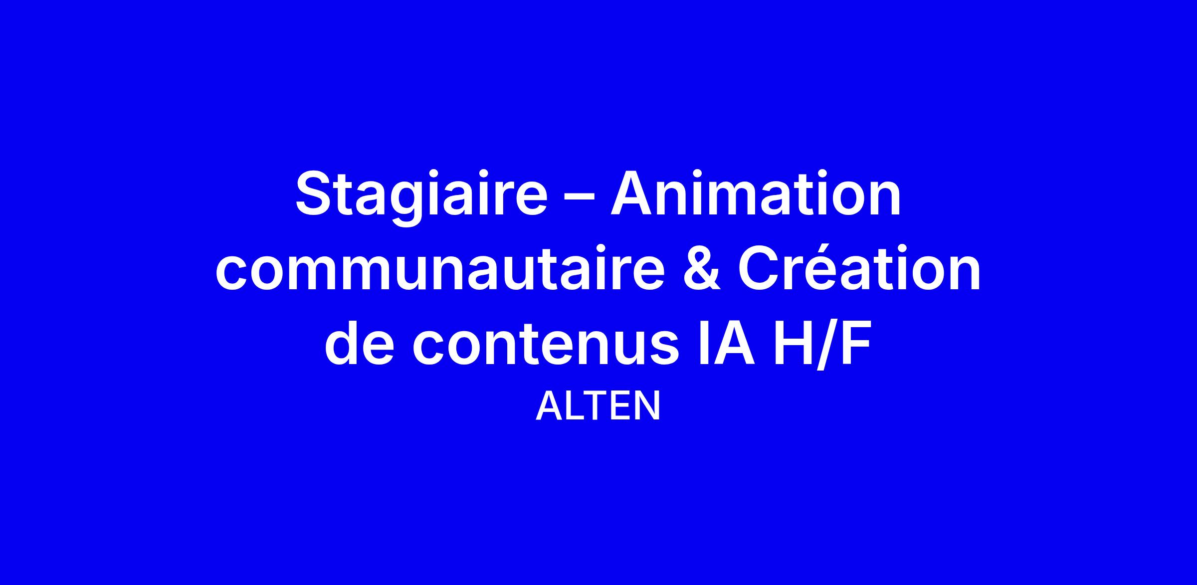 ALTEN recherche un stagiaire en Animation communautaire et Création de contenus IA, basé à Paris Boulogne Edouard Vaillant, pour accompagner la transformation IA au sein de la direction du programme. Vous participerez à l’animation de la communauté Viva Engage dédiée à l’IA, à l’organisation d’événements, à la création de visuels et de supports, et à la veille technique. Profil recherché: étudiant.e en M1 ou M2 en communication ou marketing digital, maîtrise Canva, Photoshop et Illustrator; connaissance des outils IA générative (ChatGPT, MidJourney, DALL·E) est un atout majeur; anglais courant. Conseils: personnalisez CV et portfolio avec des exemples concrets, mettez en avant vos expériences sur les réseaux et votre capacité à vulgariser des concepts.