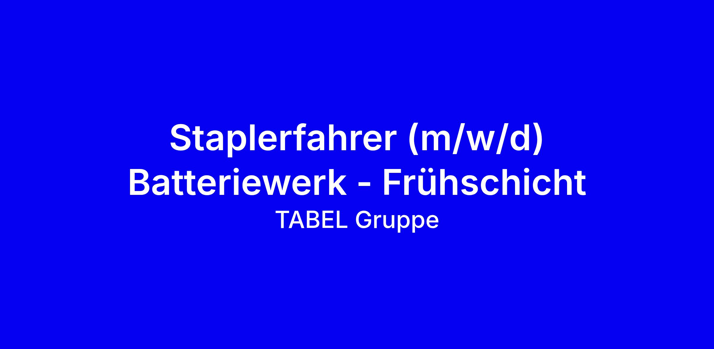 Wir suchen ab sofort einen Staplerfahrer (m/w/d) im Batteriewerk in Bad Lauterberg im Harz, Frühschicht, Vollzeit, 06:00 bis 14:00 Uhr, mit 15,50 Euro pro Stunde. TABEL Gruppe bietet keine Zeitarbeit, pünktliche Gehaltszahlung, eine gründliche Einarbeitung, einen sicheren Arbeitsplatz in einem krisensicheren Unternehmen sowie langfristige Entwicklungsmöglichkeiten bis hin zu Schicht- oder Teamleitung. Zu Ihren Aufgaben gehören der Warenverkehr im Logistikbereich, das Bereitstellen von Batteriezellen an Packplätze, der Abtransport der Zellen zur Endverpackung, Ein- und Auslagerung von Paletten und der Transport der fertigen Paletten zum Schrumpfofen. Anforderungen: Erfahrung als Staplerfahrer (Frontstapler oder Seitenschub), gültiger Staplerschein, gute Deutschkenntnisse, zuverlässige und selbstständige Arbeitsweise. Bewerbung per Email an [email protected] oder WhatsApp 015140580804, Referenz REC erwähnen; Tipps: passen Sie Ihren Lebenslauf gezielt an, betonen Sie Sicherheit, Zuverlässigkeit und Ihre Bereitschaft zur Frühschicht.