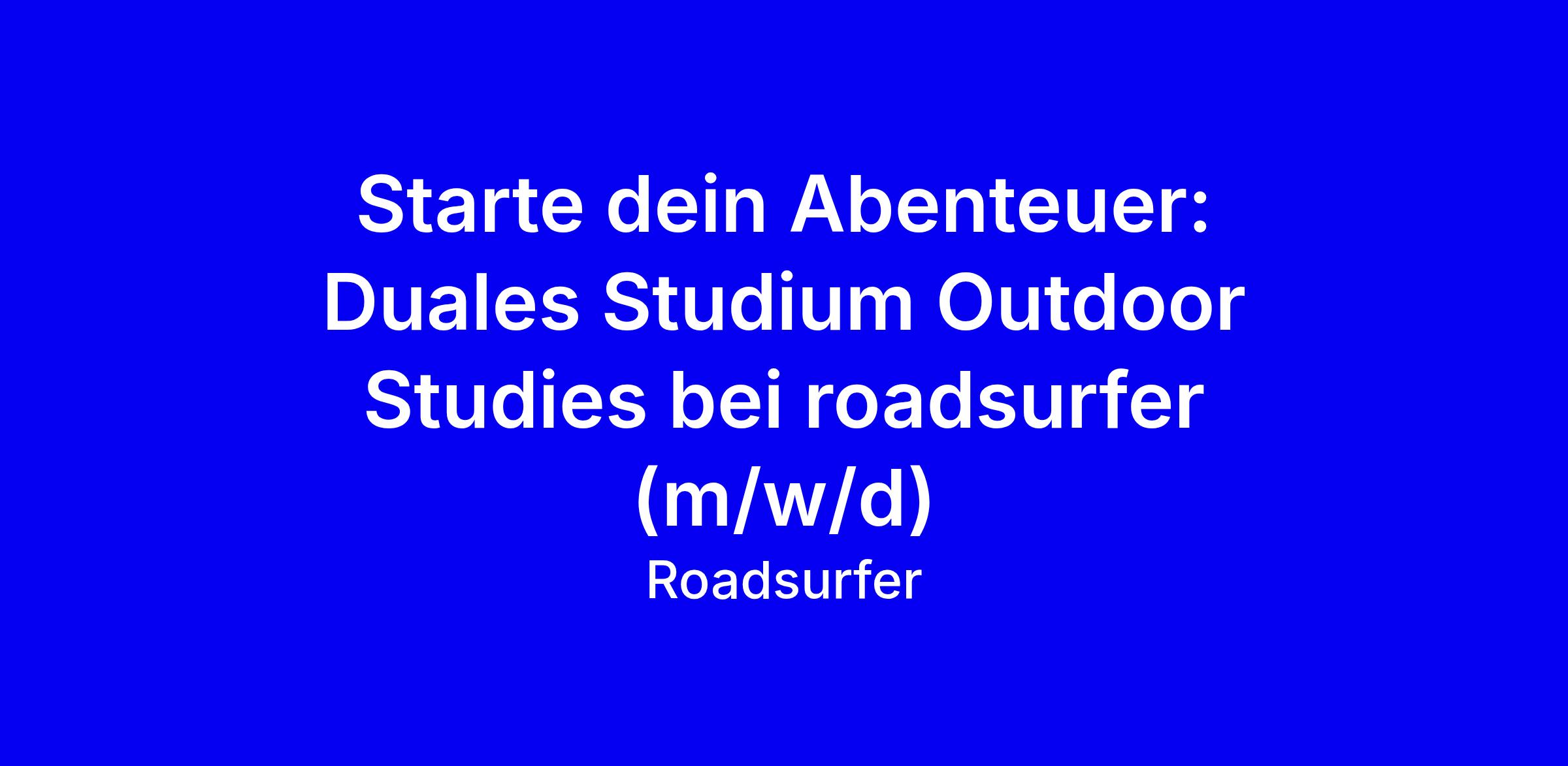 Du willst dein Studium nicht nur im Hörsaal verbringen, sondern von Anfang an praktische Erfahrung sammeln? Bei uns wirst du während deines dualen Studiums im Studiengang Outdoor Studies Teil eines internationalen Travel-Startups – und lernst das gesamte Unternehmen kennen: Von der Kundenübergabe an unseren Stationen bis zur Strategieentwicklung im Head Office. Und das Beste: Bei erfolgreichem Abschluss wartet die Chance auf dich, deine eigene roadsurfer Station zu eröffnen und zu leiten!