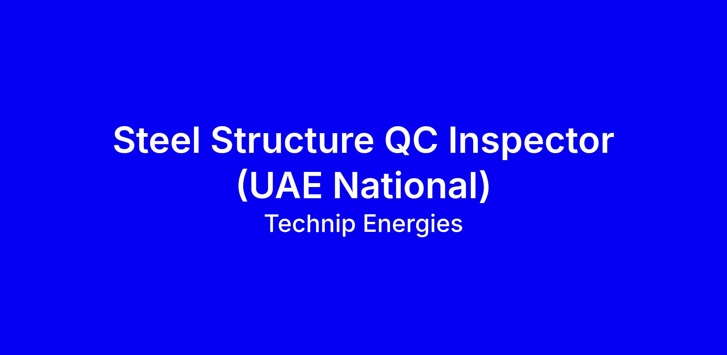 Technip Energies seeks a UAE National Steel Structure QC Inspector to join our Abu Dhabi team in Ruwais, reporting to QC leadership. The role includes assisting quality inspections of fabrication and installation, verifying compliance with drawings, project specs, and monitoring welding, fit-up, alignment, bolting and material traceability while coordinating with contractors and QC teams. You will maintain daily QC records and non-conformances, upholding HSE and quality procedures. Candidates have 6 months to 1 year in steel structure QC or welding inspection, a diploma or bachelor’s in Mechanical or Civil Engineering, and strong communication. To apply, tailor your resume to emphasize on-site QC, QA/QC documentation, safety and teamwork, Emiratisation status.