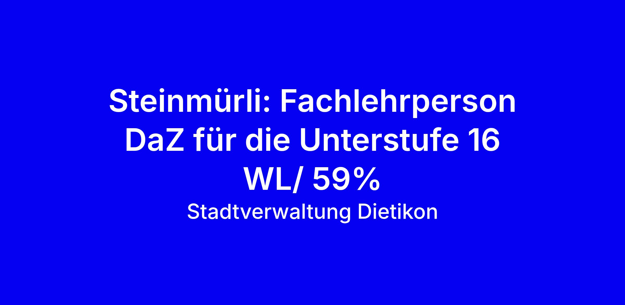 Die Steinmürli sucht eine Fachlehrperson DaZ für die Unterstufe, 59% Teilzeit (16 WL), Mo, Mi und Fr. Ihre Aufgaben umfassen DaZ-Unterricht in der 4. und 5. Klasse, Teamteaching und Unterrichtssegmente. Sie sind ausgebildete Primarlehrperson, idealerweise mit DaZ-Qualifikation, und sehen Heterogenität sowie ein multikulturelles Umfeld als Bereicherung. Wichtig ist eine strukturierte, zielgerichtete Arbeitsweise und Freude an der Zusammenarbeit mit Fachlehrpersonen. Geboten werden eine unterstützende Stellenpartnerin, Weiterbildungsmöglichkeiten, eine stabile Schulhauskultur, Begleitung durch Schulleitung, Schulsozialarbeit und Schulpsychologischen Dienst sowie moderne Infrastruktur und digitale Tools. Bewerben Sie sich online; Auskunft erteilt Herr Gabriel Terlemez, Tel. 044 743 77 06. Wir freuen uns auf Ihre online Bewerbung.