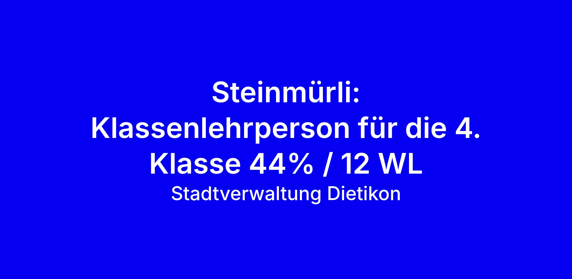 Die Stadt Dietikon sucht ab 01.08.2026 eine Klassenlehrperson für die 4. Klasse an der Steinmürli Schule, 44% bzw. 12 WL, mit Arbeitstagen Do und Fr vor Ort. Gesucht wird eine ausgebildete Primarlehrperson, ideal mit Erfahrung auf der Mittelstufe, die Heterogenität und ein multikulturelles Arbeitsumfeld als Bereicherung sieht und gerne zielgerichtet im Team arbeitet. Die Stelle bietet eine erfahrene Stellenpartnerin, Weiterbildungsmöglichkeiten, Unterstützung durch Schulleitung, Schulsozialarbeit und Schulpsychologischen Dienst sowie eine gut ausgestattete Infrastruktur und vielfältige digitale Tools. Betonen Sie im Motivationsschreiben Teamfähigkeit, Interesse an Heterogenität und der neuen Autorität. Bewerbungen online, Auskünfte bei Frau Christina Dietrich, Schulleitung, 044 743 77 01; mehr unter dietikon.ch.