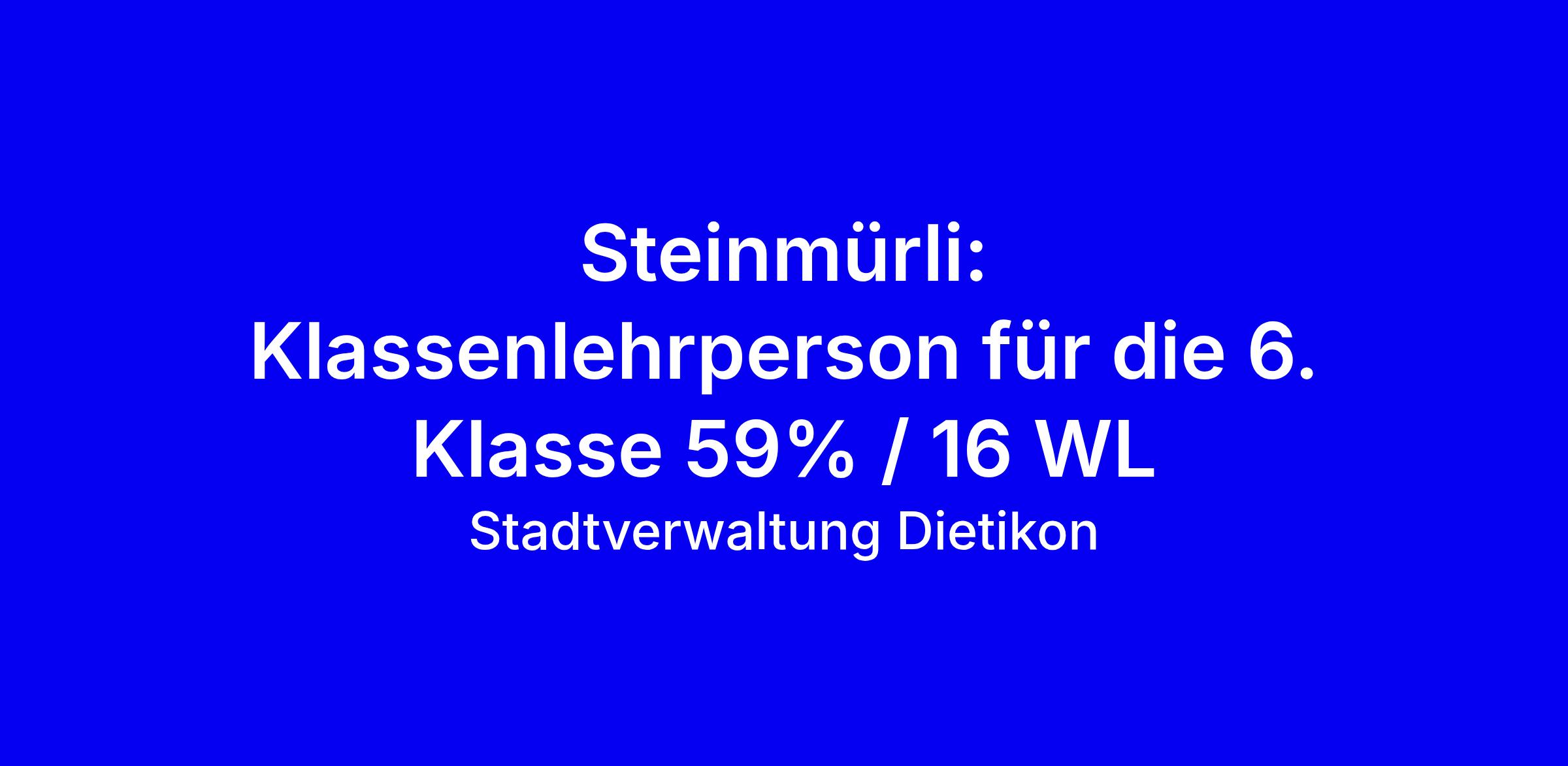Steinmürli: Klassenlehrperson für die 6. Klasse 59% / 16 WL