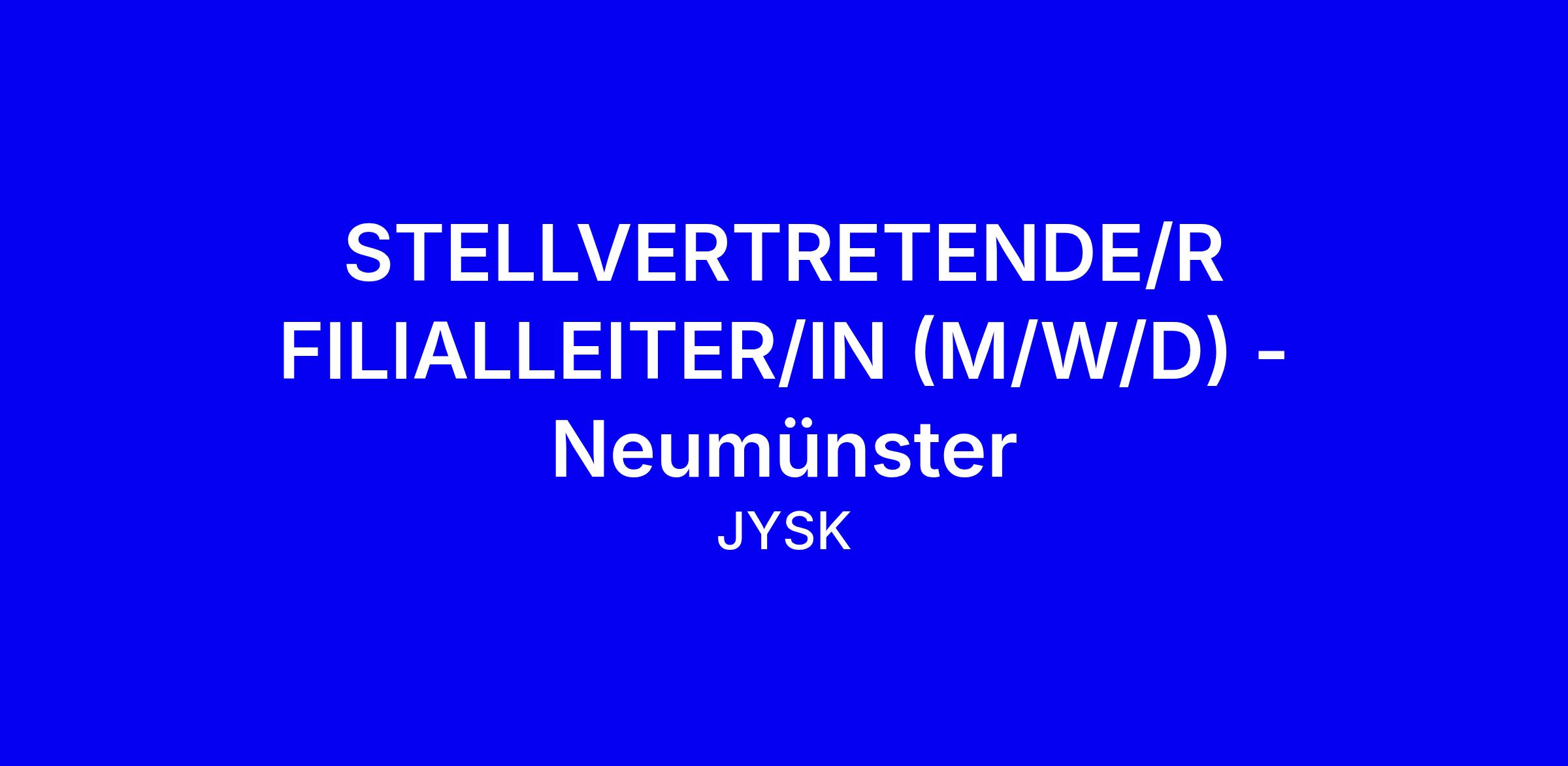 Die Stelle Stellvertretende Filialleiter/in (M/W/D) bei JYSK in Neumünster ist eine vollzeitige Führungsposition vor Ort, in der du gemeinsam mit der Filialleitung das Team entwickelst, Kennzahlen positiv beeinflusst und das Einkaufserlebnis unserer Kunden sicherst. JYSK bietet dir exzellentes Training und Mentoring, flexible Arbeitszeiten mit einem arbeitsfreien Samstag pro Monat, 20% Mitarbeiterrabatt, Urlaubs- und Weihnachtsgeld sowie umsatzorientierte Boni, betriebliche Altersvorsorge mit 30% AG-Zuschuss, steuerfreies Gehaltsextra bis 50€ monatlich und zahlreiche Benefits sowie 36 Tage Urlaub. Du bringst Inspiration, kommunikative Stärke, Zielstrebigkeit und Belastbarkeit mit, bist bereit Samstage zu arbeiten und fühlst dich im Verkauf wohl; Quereinsteiger sind willkommen. Reiche deine Bewerbung ein mit konkreten Beispielen deiner Führungs- und Verkaufserfolge und zeig, wie du das Team motivierst.