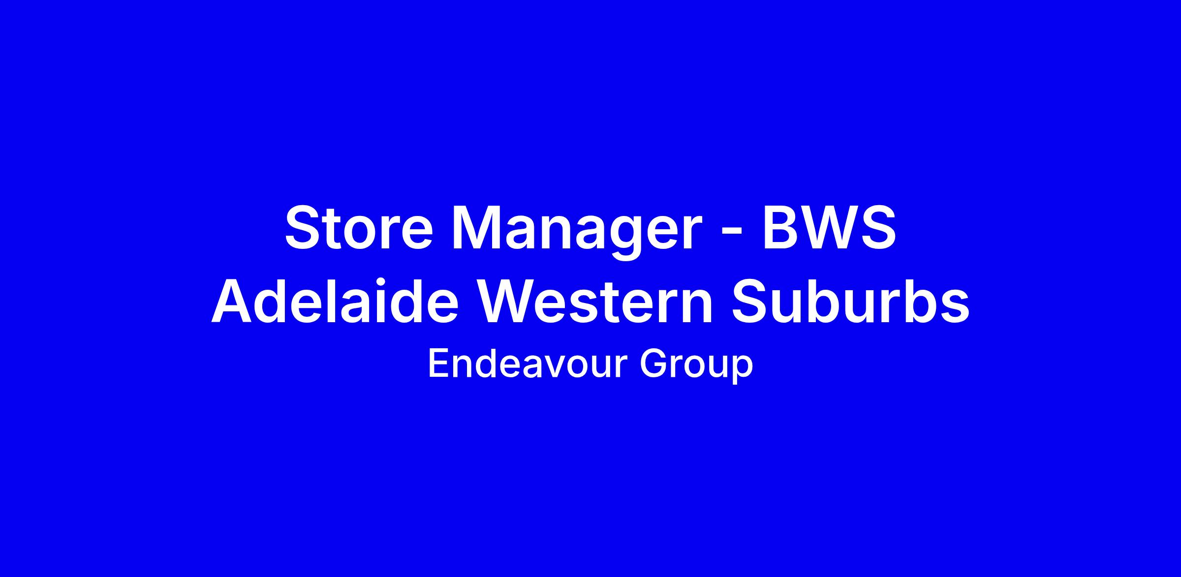 Store Manager | BWS - Adelaide Western Suburbs | Passionate About People
