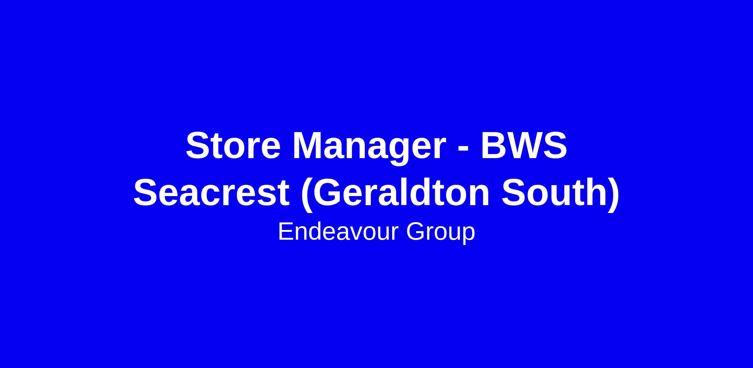 Store Manager | BWS - Seacrest (Geraldton South) | Passionate About People
