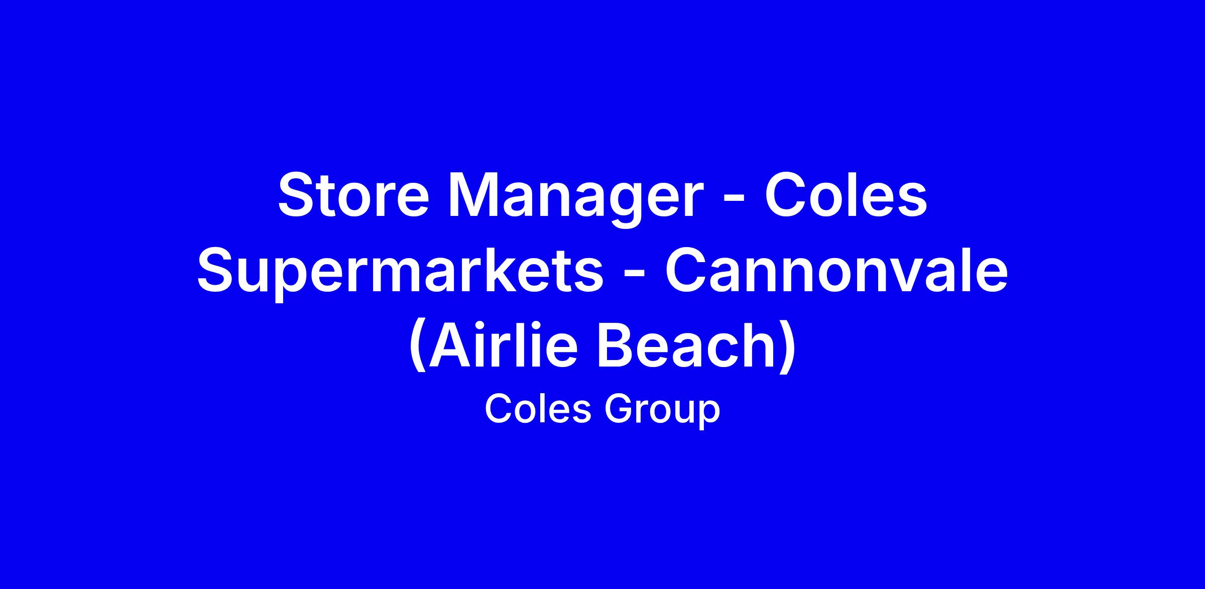 Coles Group is hiring a Store Manager for Cannonvale (Airlie Beach) to lead the day to day operations of a multi-million dollar store, drive key commercial targets, and deliver the store retail plan while ensuring outstanding customer service. You’ll coach and lead a 100+ strong team in a fast paced, complex environment, uphold visual merchandising, safety, compliance and auditing standards, and foster a one team culture that prioritises health and wellbeing. Benefits include staff discounts, recognition via mythanks, development programs, novated leases and potential share ownership. To apply, tailor your resume with clear examples of leading large teams, achieving targets, and customer focus, and reference Job ID 180849.