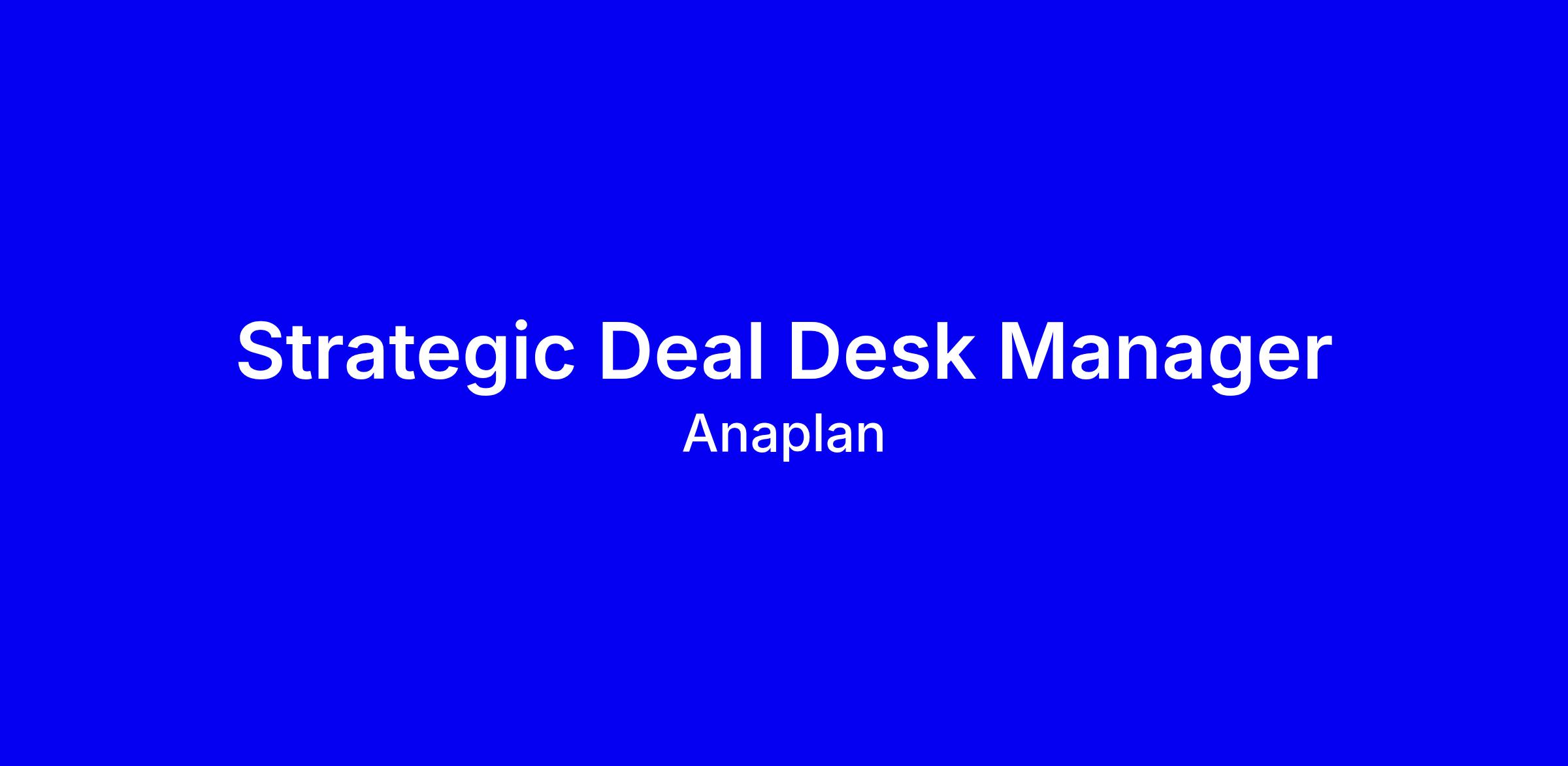 Anaplan seeks a Strategic Deal Desk Manager to partner with Sales and Finance in a global Commercial Operations team, splitting focus 50/50 between direct strategic deal support and serving as the SME for Cloud Marketplaces and Reseller programs. You’ll design and contract innovative SaaS offers, lead deal reviews, and ensure compliant, revenue-recognizable terms across direct, MSP, reseller, and marketplace transactions with AWS, Azure and GCP. The role requires 5+ years in SaaS deal support, 2+ years with marketplaces/resellers, strong pricing and contracting skills, and outstanding cross functional collaboration. Ideal candidates are customer first, self-starters, and proficient in Salesforce/CPQ, Excel. Hybrid with 2 days in office; location options include London and U.S. hubs.
