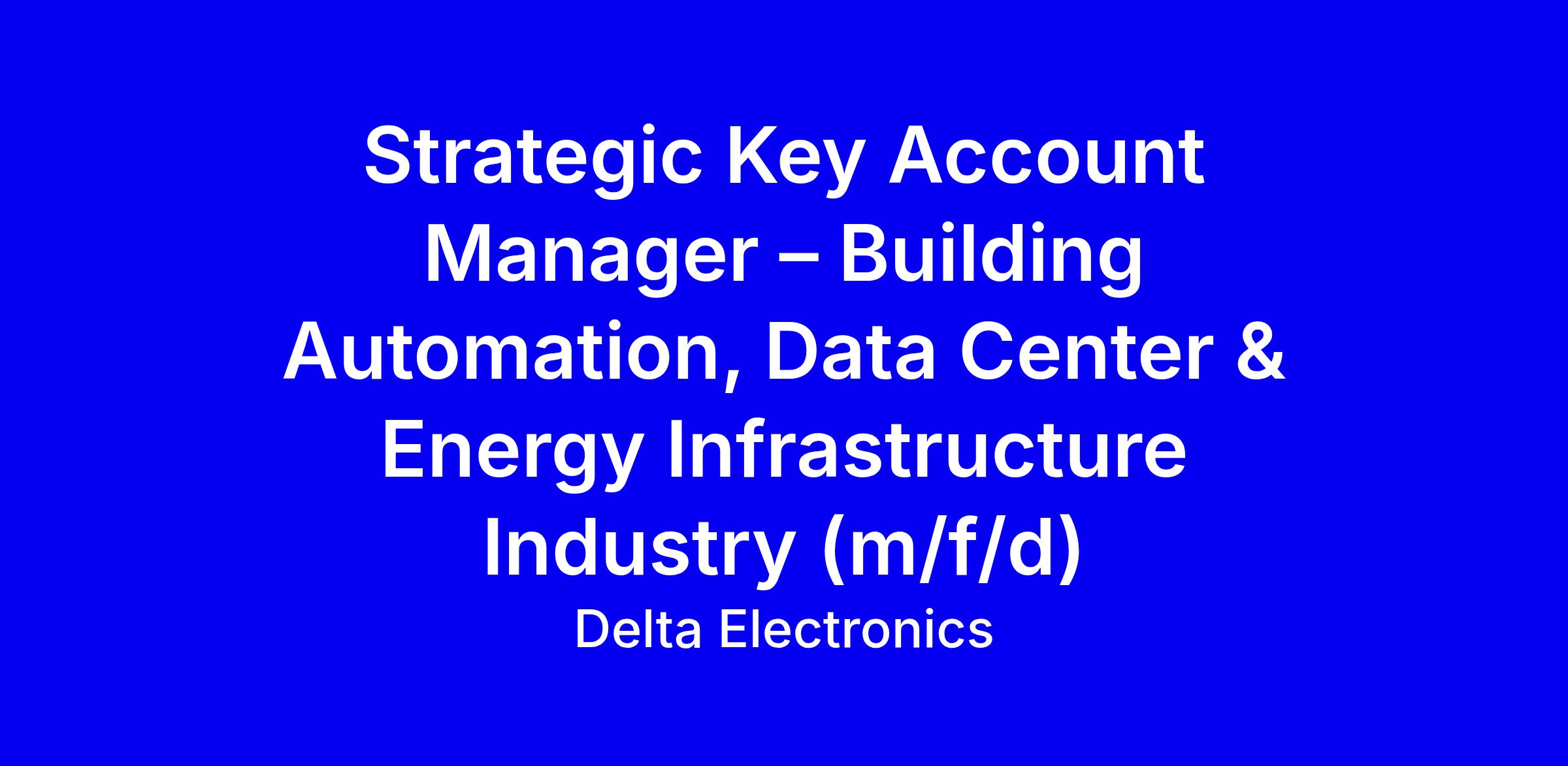 Delta Electronics seeks a Strategic Key Account Manager to own and develop long term strategies for European accounts in Building Automation, Data Center and Energy Infrastructure. You will be the primary commercial interface across regional and global teams, driving complex solution sales from early engagement to tendering and framework agreements, while building senior relationships with C level, procurement and infrastructure stakeholders. The role focuses on BAS/BMS, energy management, digital platforms and lifecycle services, with emphasis on contract negotiations and governance in a cross border ecosystem. Candidates typically have 6–10+ years in strategic KAM or complex B2B sales, managing multi million euro accounts, a technical or business degree, fluent English, German or Dutch a plus, and willingness to travel. Apply with a CV and examples of executive engagement, value based selling, and measurable outcomes, showing familiarity with European procurement models and Delta’s ESG focus.