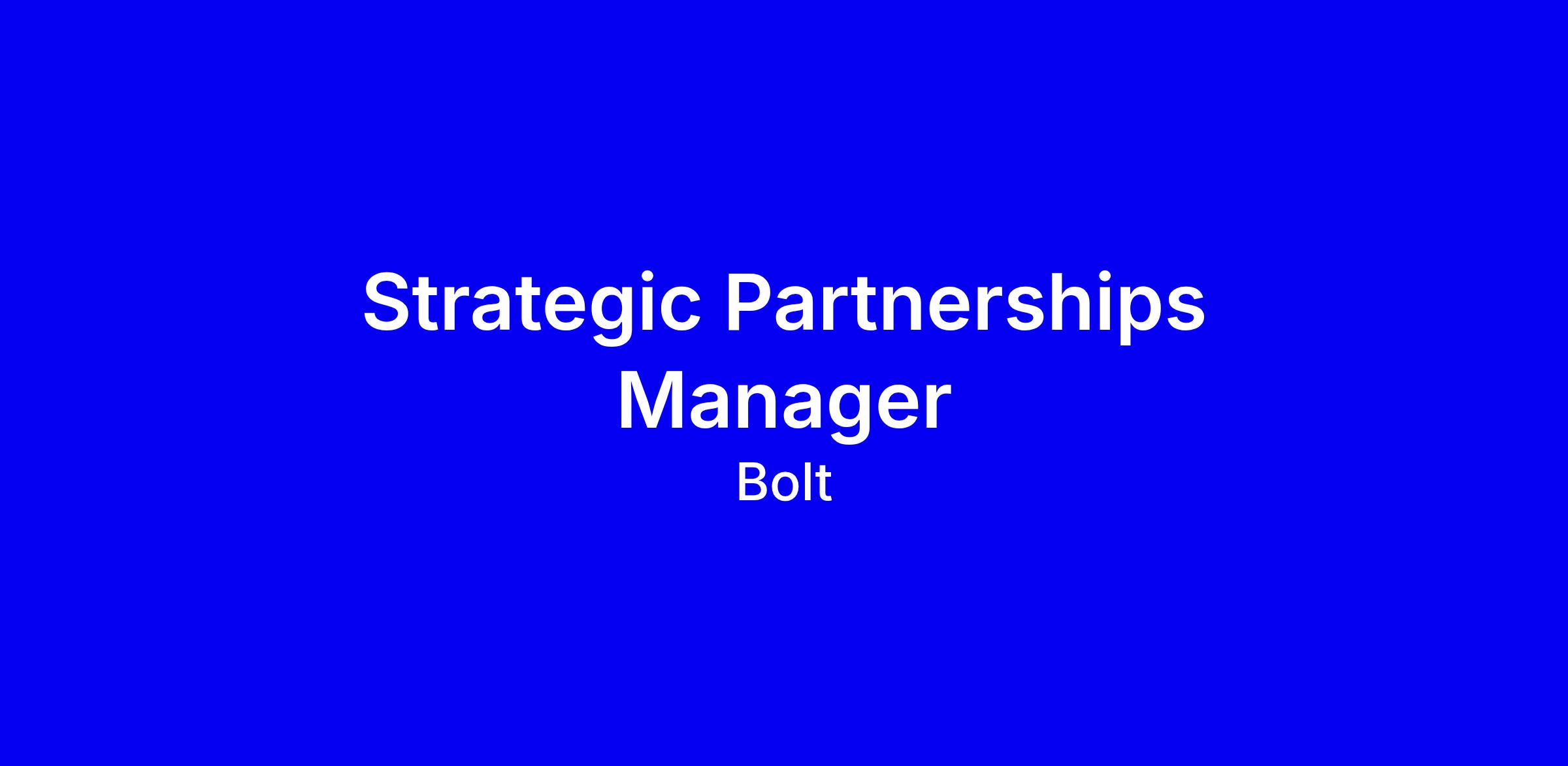 We’re seeking an experienced Strategic Partnerships Manager to join our Bolt Business team in London. As a Strategic Partnerships Manager at Bolt Business, you will be pivotal in driving our growth strategy by identifying and cultivating impactful partnerships and initiatives, as well as optimising our existing relationships.