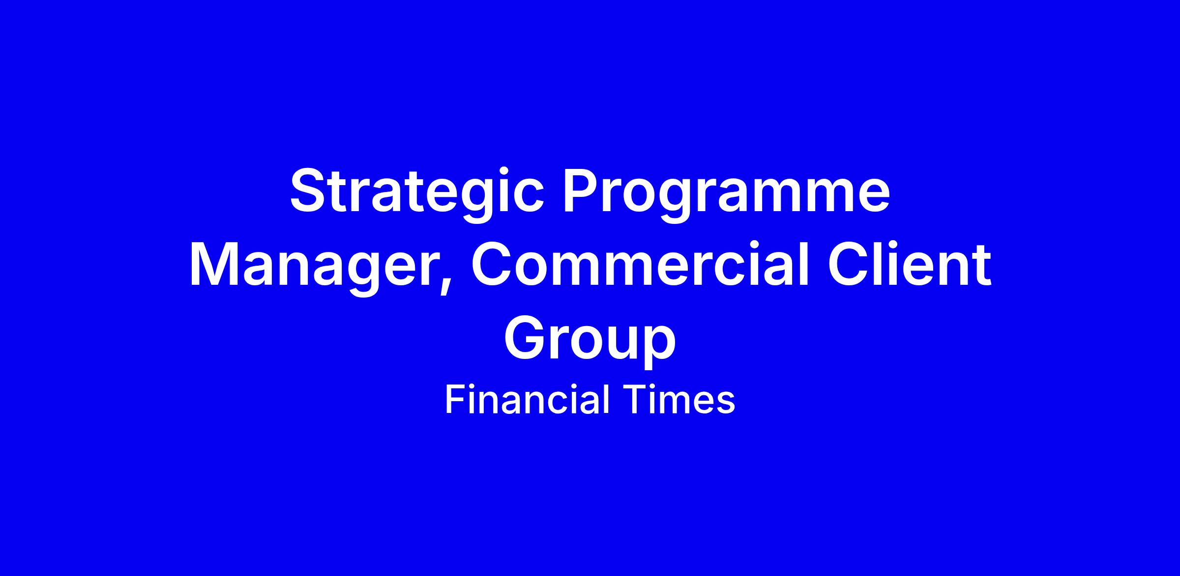 Financial Times is seeking a Strategic Programme Manager for the Commercial Client Group in London to lead cross‑functional, high‑impact programmes across FT Live, Longitude, Advertising, Education and Print. Translate strategic priorities into structured delivery, secure resources, govern through steering groups and cadences, and track benefits and risks. The role demands senior stakeholder management, clear storytelling, and rigorous analytical problem solving in a fast paced matrixed environment. If you come from consulting or strategy delivery, show measurable outcomes, cross‑functional leadership and any technology or product enablement work. Highlight autonomy, commercial awareness and alignment across business lines. FT offers a 50% hybrid model, inclusive benefits and accessibility support; tailor your application with impact‑driven, quantified examples.