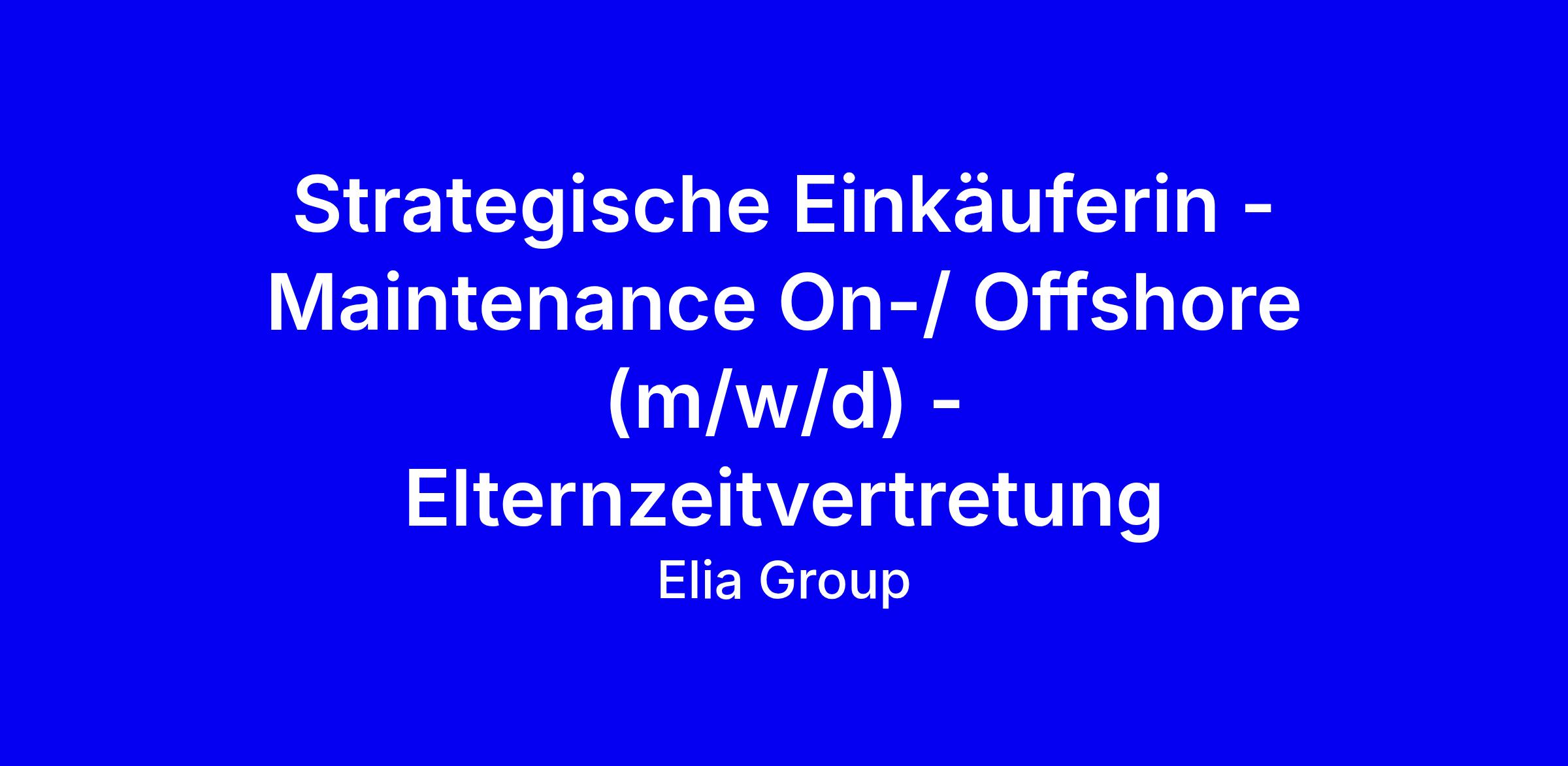 Strategische Einkäuferin - Maintenance On-/ Offshore (m/w/d) - Elternzeitvertretung
