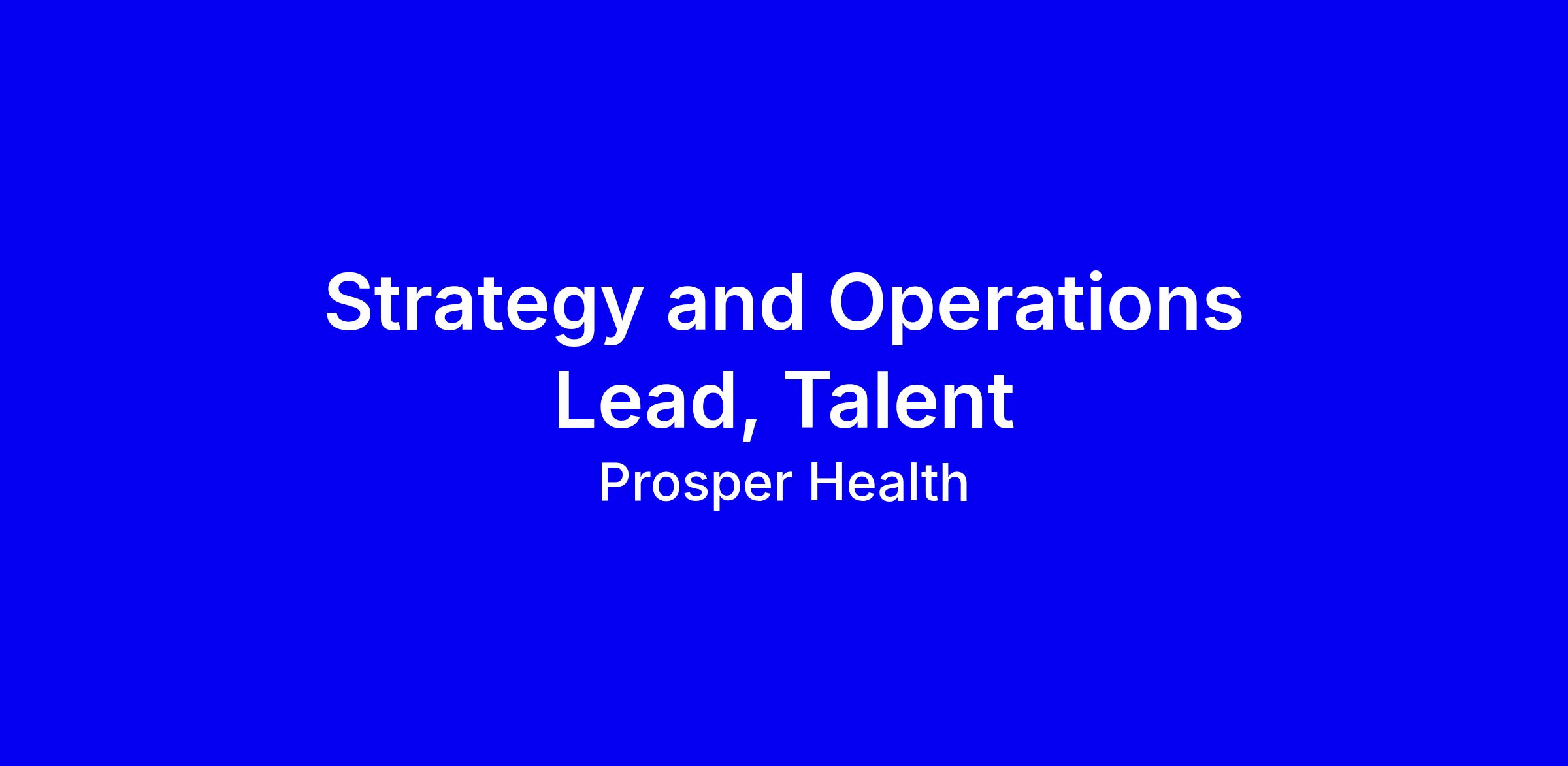 Prosper Health is hiring a Strategy and Operations Lead, Talent to design and run the end-to-end hiring system as the company scales from 30 to 60 people onsite in New York City, reporting to the CEO. You’ll translate ambiguous hiring needs into clearly scoped roles, structured interview plans, and fast, reliable decisions, while personally sourcing candidates and building scalable processes. Ideal candidates have 2–5+ years in high-growth consulting or operating roles, are comfortable pushing back on scope and process, and can own hiring end-to-end with a bias for speed and quality. To apply, highlight measurable outcomes, first-principles thinking, scrappy sourcing, and alignment with Prosper’s mission to support autistic and neurodivergent adults.