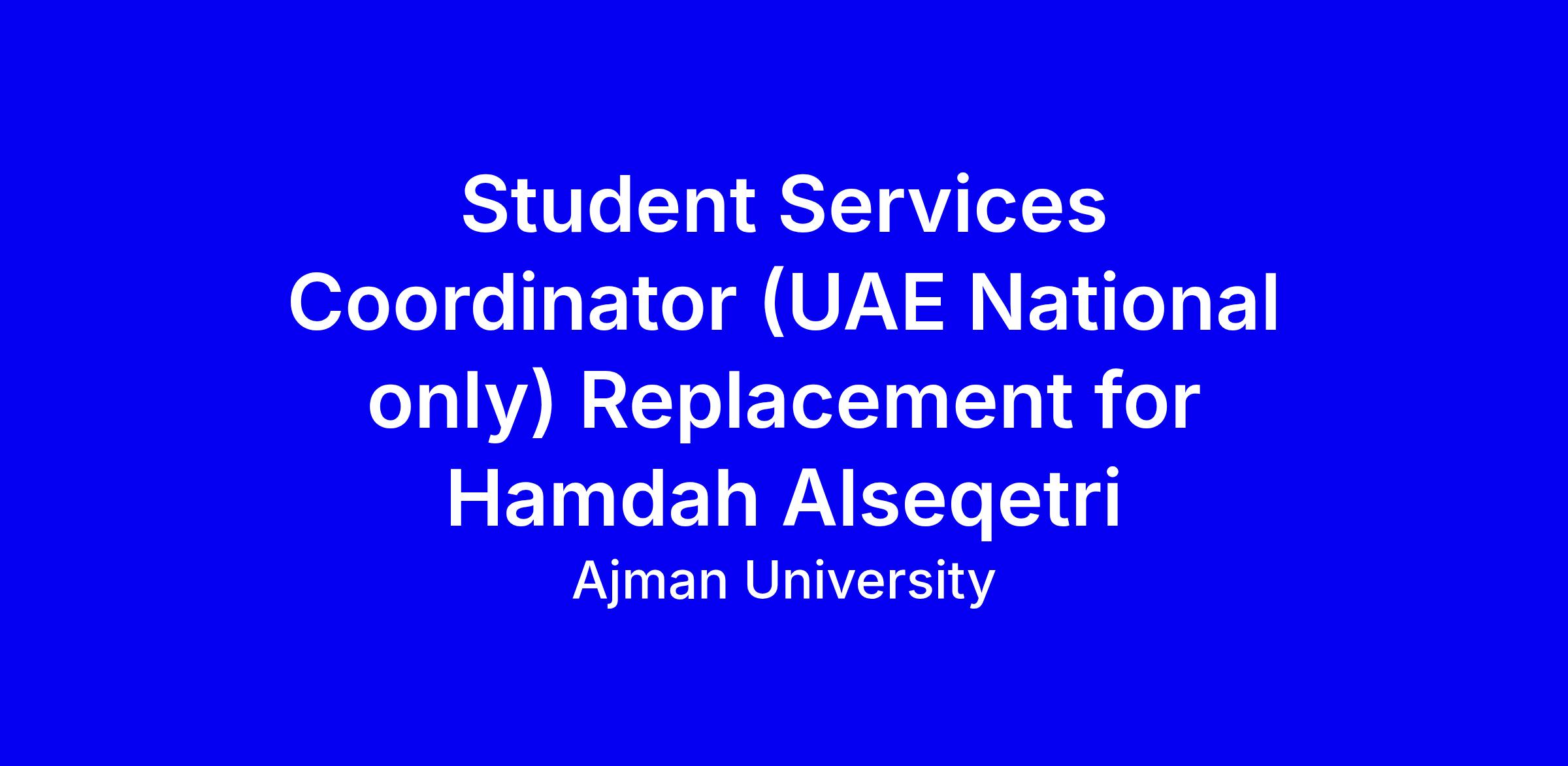 Ajman University is seeking a UAE national for the full-time, onsite role of Student Services Coordinator to replace Hamdah Alseqetri. This frontline position supports the Office of Registration, managing the front desk, mail flow, inquiries in Kayako, registration tasks, producing letters and transcripts, MOE attestation uploads, courier coordination, and coordinating with colleges to maintain accurate student records. Requirements include a bachelor’s in business administration or IT, at least two years’ related experience, excellent English communication, solid records management, and MS Office proficiency; Banner SIS experience and multilingual skills are a plus. To apply, tailor your resume to emphasize registration support, document production, customer service, teamwork, and proven reliability in fast-paced environments.