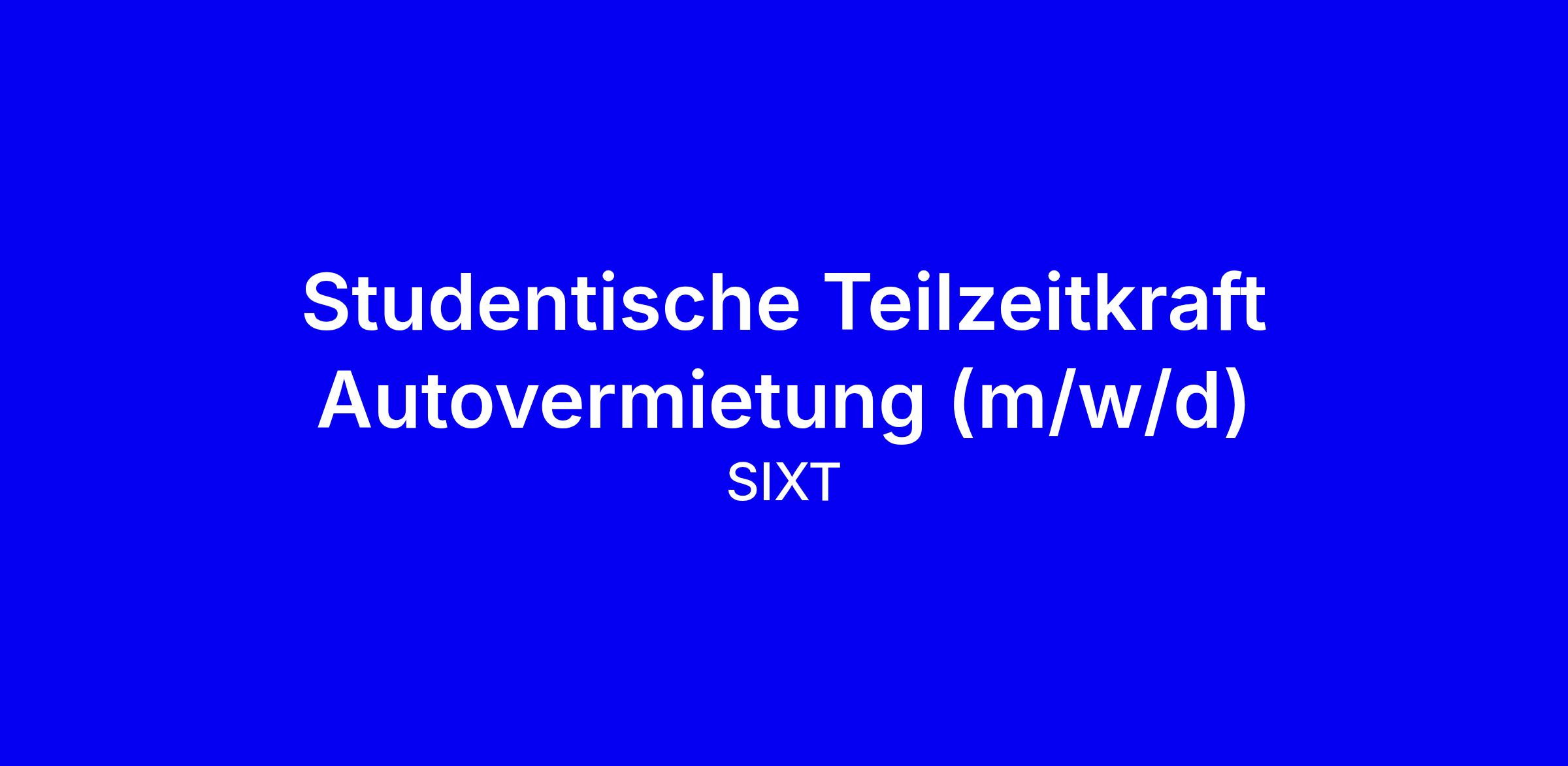 Wir sind ein weltweit führender Mobilitätsdienstleister mit einem Umsatz von 4,00 Milliarden Euro und rund 9.000 Mitarbeitern weltweit. Unsere Mobilitätsplattform ONE vereint unsere Produkte SIXT rent (Autovermietung), SIXT share (Carsharing), SIXT ride (Taxi-, Fahr- und Chauffeurservices), SIXT+ (Auto Abo) und gibt unseren Kunden Zugang zu unserer Flotte von 350.000 Fahrzeugen, den Services von 4.000 Kooperationspartnern und rund 5 Millionen Fahrern weltweit. Zusammen mit unseren Franchise-Partnern sind wir in mehr als 110 Ländern an 2.000 Vermietstationen präsent. Bei SIXT stehen ein erstklassiges Kundenerlebnis sowie ein herausragender Kundenservice an erster Stelle. Wir setzen auf echtes Unternehmertum und langfristige Stabilität und richten unsere Unternehmensstrategie mit Weitsicht aus. Starte mit uns durch und bewirb Dich jetzt!