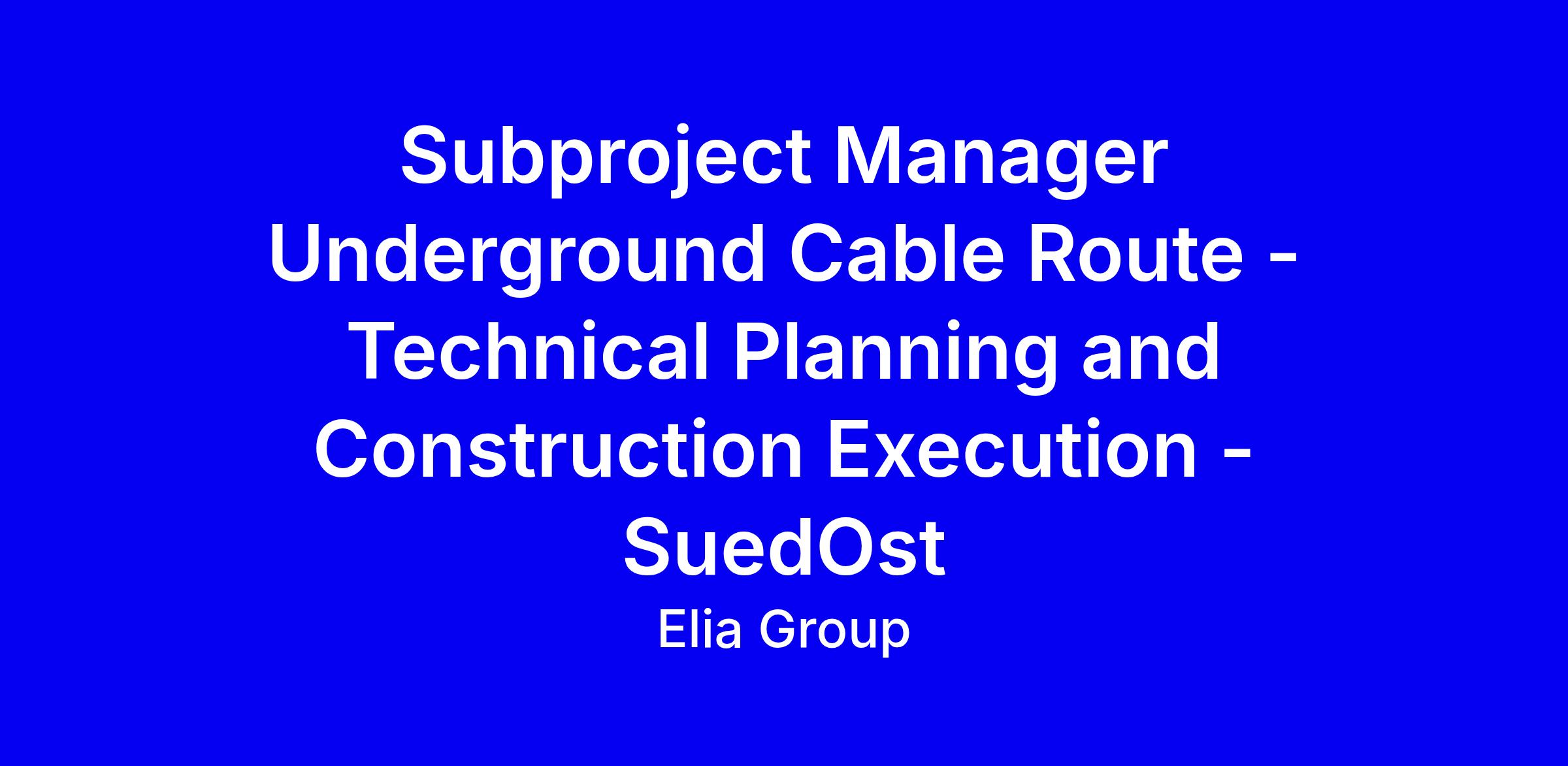 Subproject Manager Underground Cable Route - Technical Planning and Construction Execution - SuedOst