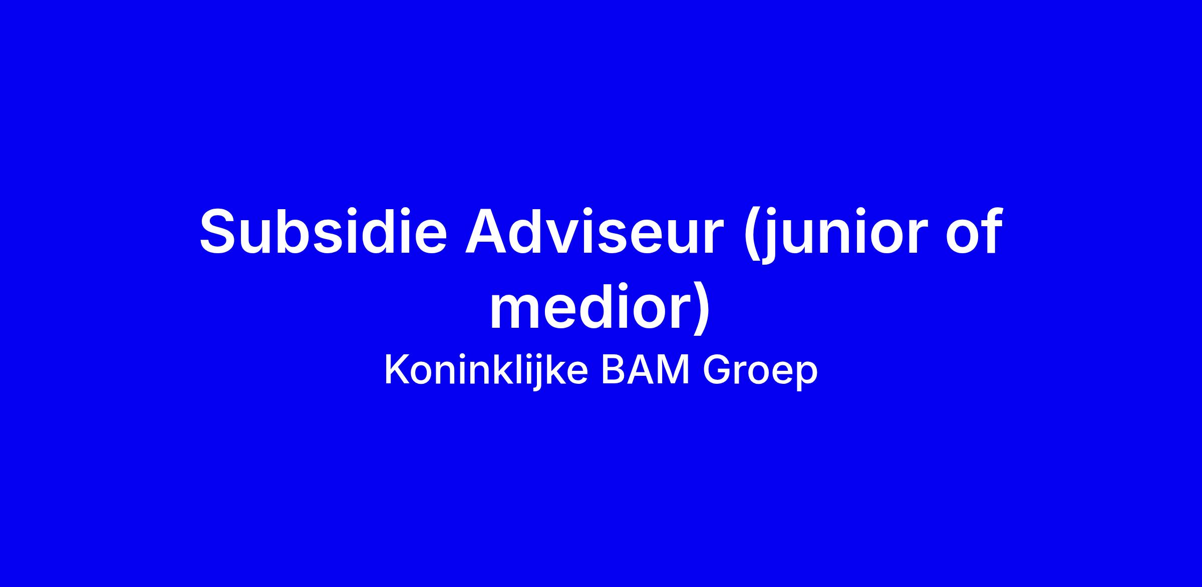 Wat als jij een maatschappelijke bijdrage kan leveren bij het grootste bouwbedrijf van Nederland? Als Subsidie Adviseur werk jij mee aan het realiseren van de duurzame ambities van BAM en onze klanten. Iets voor jou? Reageer dan op deze mooie kans.