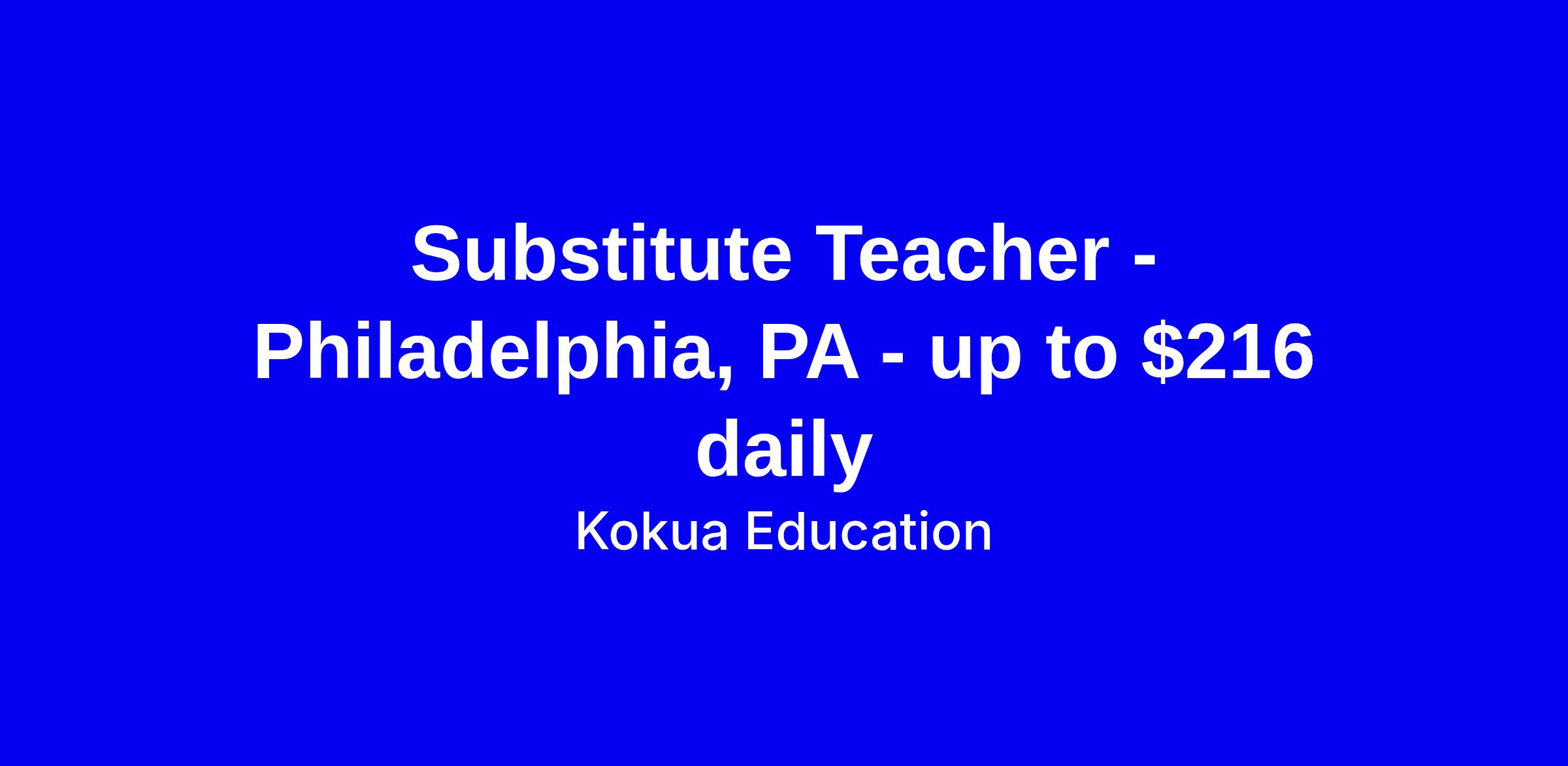 Kokua Education is hiring substitute teachers for the Philadelphia area with pay up to $216 daily, weekly pay, and a flexible schedule up to five days a week. You’ll positively impact your community by sparking a love for learning, while choosing the assignments and locations that excite you. To apply, you need a bachelor’s degree, at least six months’ work or volunteer experience with students, and the ability to pass background checks and commute to North Philadelphia. Onboarding can take 2-3 weeks due to state requirements, with a quick offer timeline and strong daily support from 6am-8pm. Highlight classroom management, adaptability, and commitment to ongoing PD when applying.