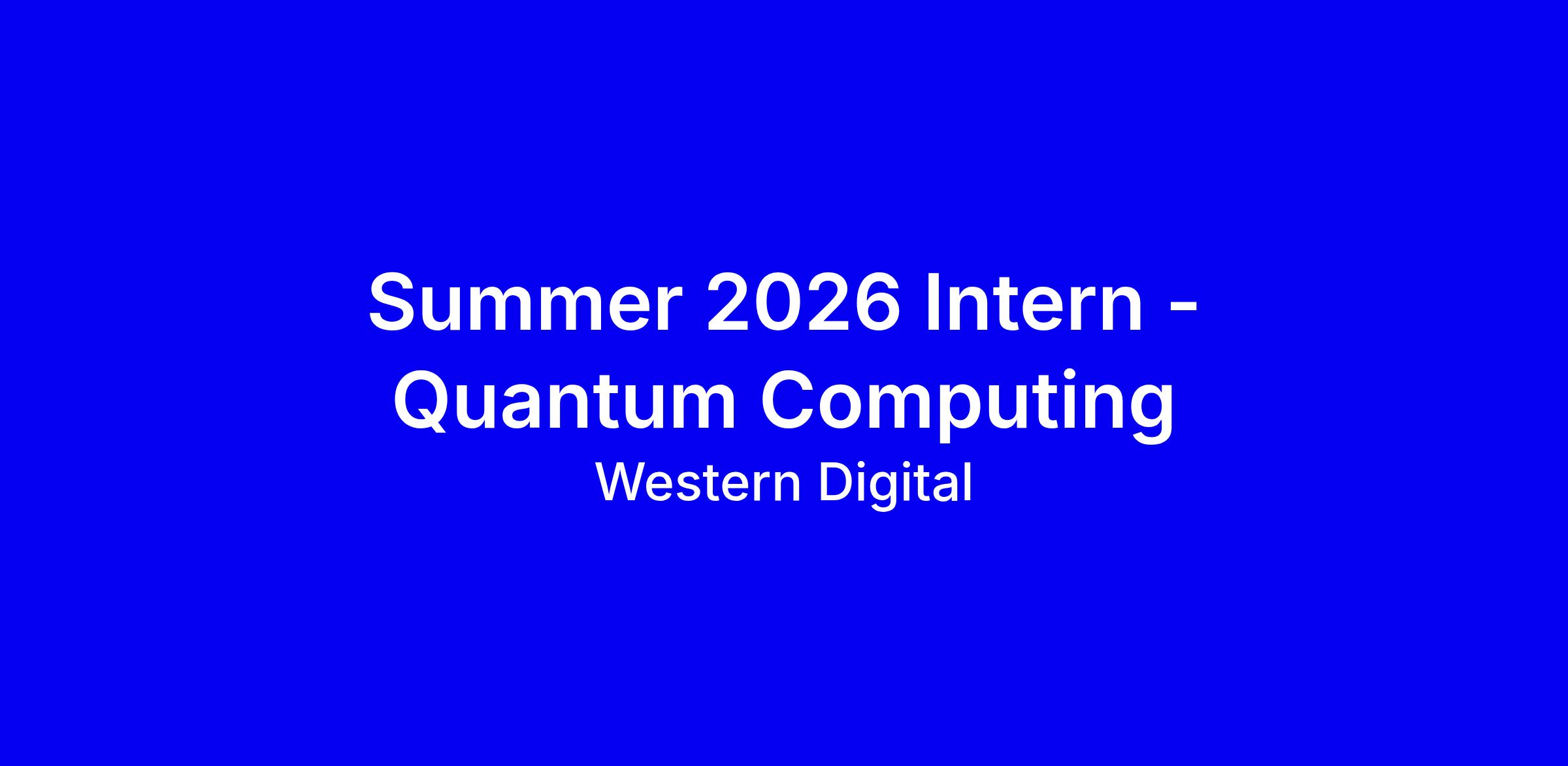 Western Digital is offering a Summer 2026 Intern position in Quantum Computing, onsite in San Jose, to work with researchers on superconducting qubit fabrication, quantum error correction, and quantum algorithms. The role includes designing and implementing quantum algorithms, optimizing circuits, testing hardware and software, analyzing experimental data, documenting work, and presenting findings in team reviews with opportunities to publish advances and pursue patents through WD’s Early Career program, which provides onboarding and mentorship. To apply, highlight progress toward an advanced degree in Physics, Mathematics, Electrical Engineering, or related quantum field, demonstrate a strong quantum computing foundation, Python or Qiskit/Q#, linear algebra, and data analysis, and meet the 5/4/26 deadline, underscoring collaboration and communication skills.