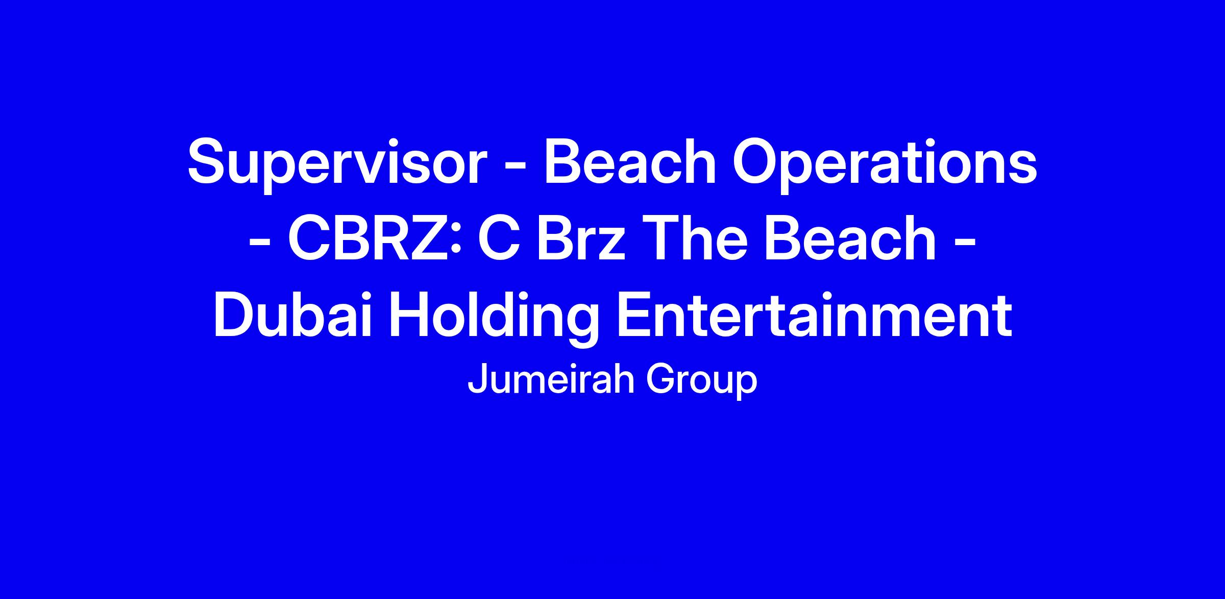 Job Overview: Here's your chance to step into the role of Food and Beverage Supervisor at Sea Breeze in Dubai Holding Entertainment. In this position, you'll take on key responsibilities that include: